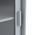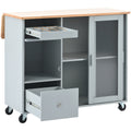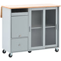 Kitchen Island With Drop Leaf, Led Light Kitchen Cart On Wheels With 2 Fluted Glass Doors And 1 Flip Cabinet Door, Large Kitchen Island Cart With An Adjustable Shelf And 2 Drawers Grey Blue Grey