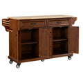 Kitchen Island With Rubber Wood Countertop, Kitchen Cart On 5 Wheels With Storage Cabinet And 5 Drawers For Dinning Room, Mahogany Mahogany Dining Room Rectangular Rubberwood Solid Wood Mdf Large 56 In