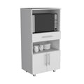 Kitchen Pantry 48" H, Two Open Storage Shelves, One For Microwave, Two Doors, Four Legs, White White Particle Board Pine