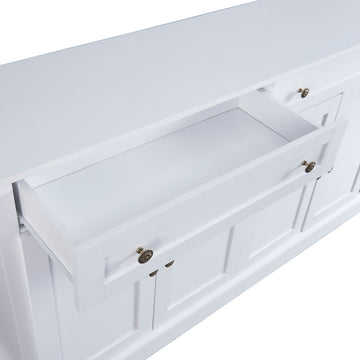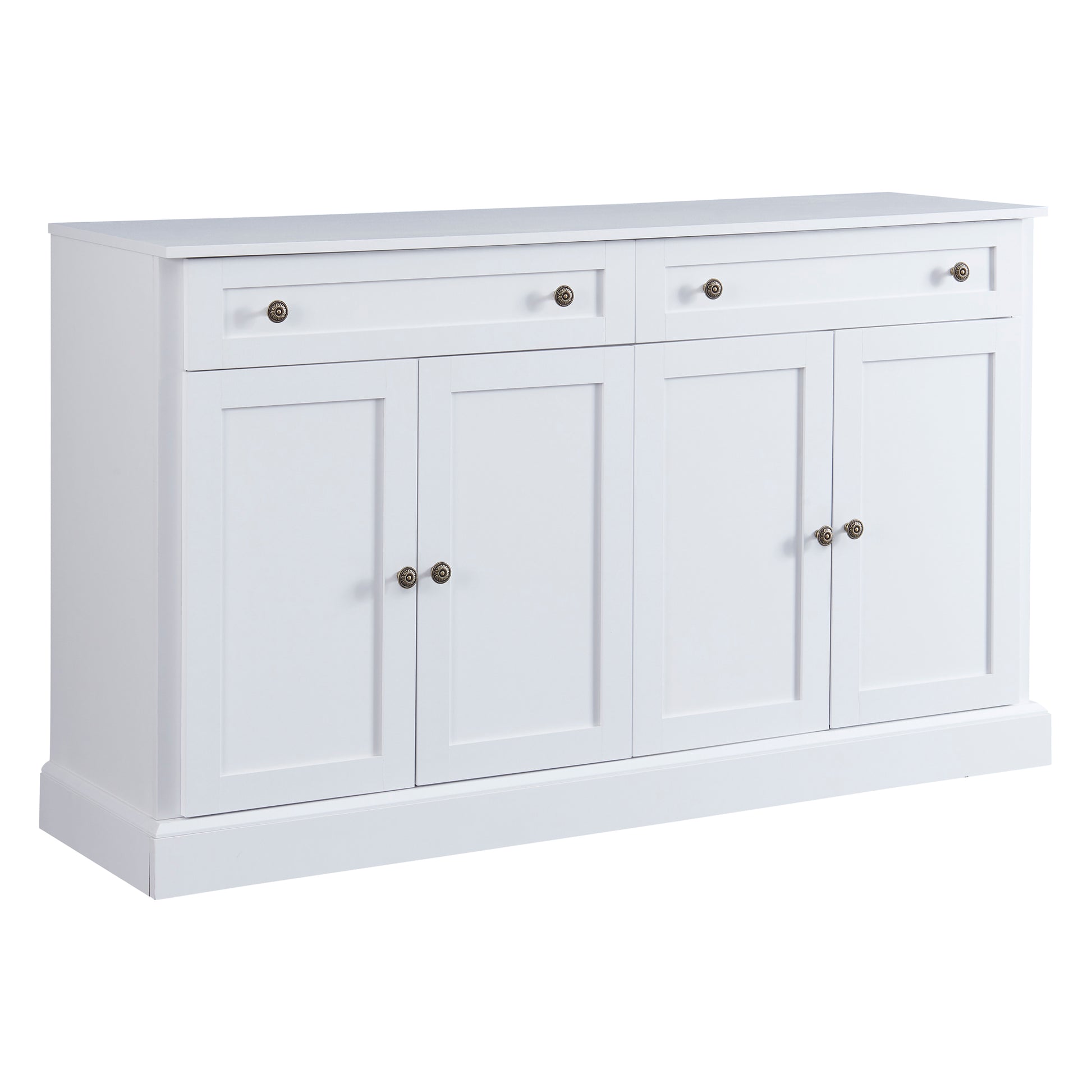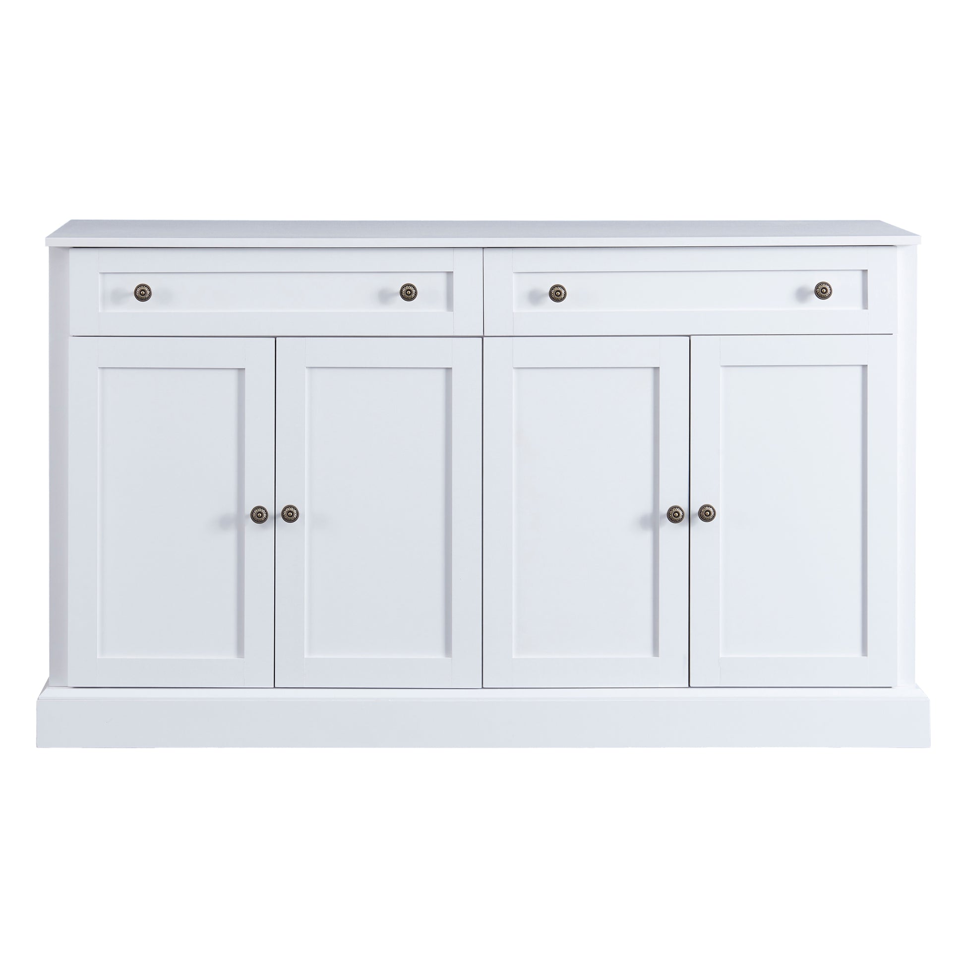 Kitchen Sideboard Storage Buffet Cabinet With 2 Drawers & 4 Doors Adjustable Shelves For Dining Room, Living Room White White Particle Board