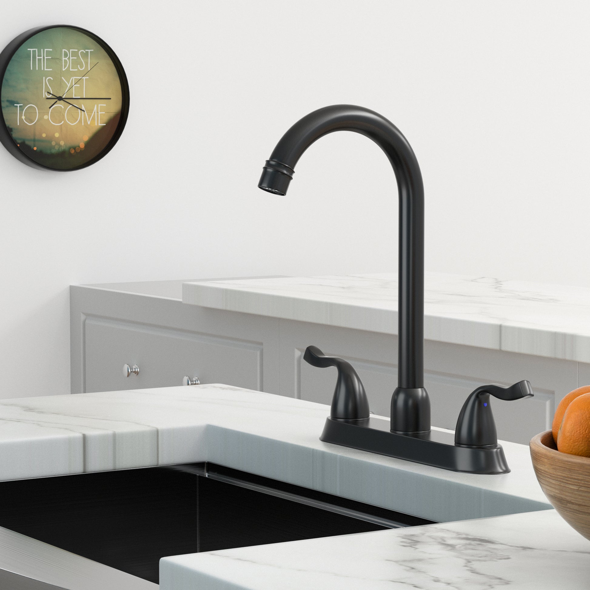 Kitchen Sink Faucet With 2 Handles, 3 Hole Installation, Matte Black Matte Black Stainless Steel