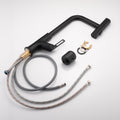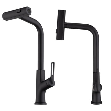 Kitchen Waterfall Faucet With Pull Down Sprayer, Single Handle Kitchen Sink Faucet With Pull Out Sprayer, 360 Rotating Kitchen Faucet Matte Black Zinc