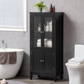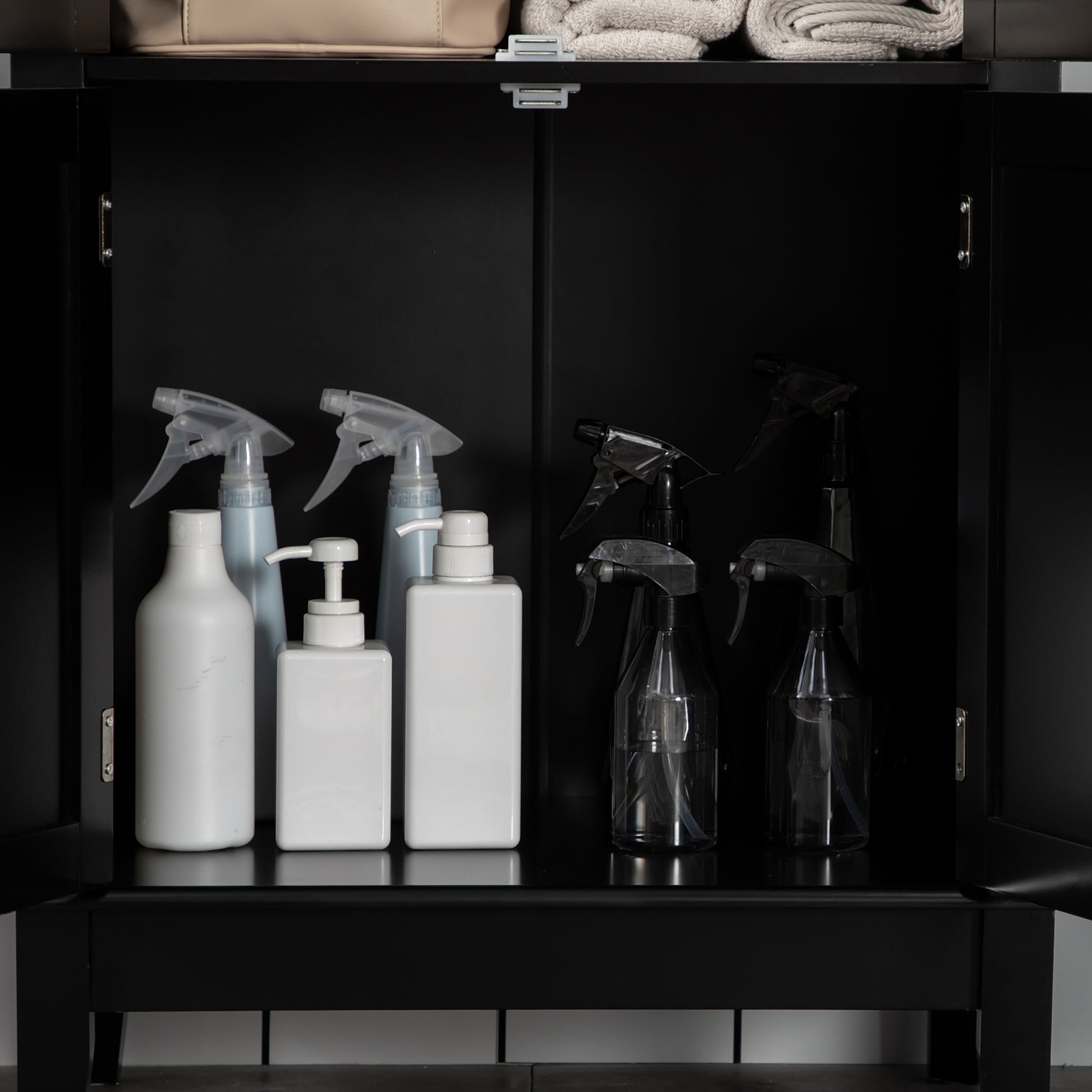 Kleankin Bathroom Floor Cabinet With 2 Storage Cabinets, Tempered Glass Door, Freestanding Linen Tower With Adjustable Shelves For Living Room, Black Black Mdf