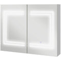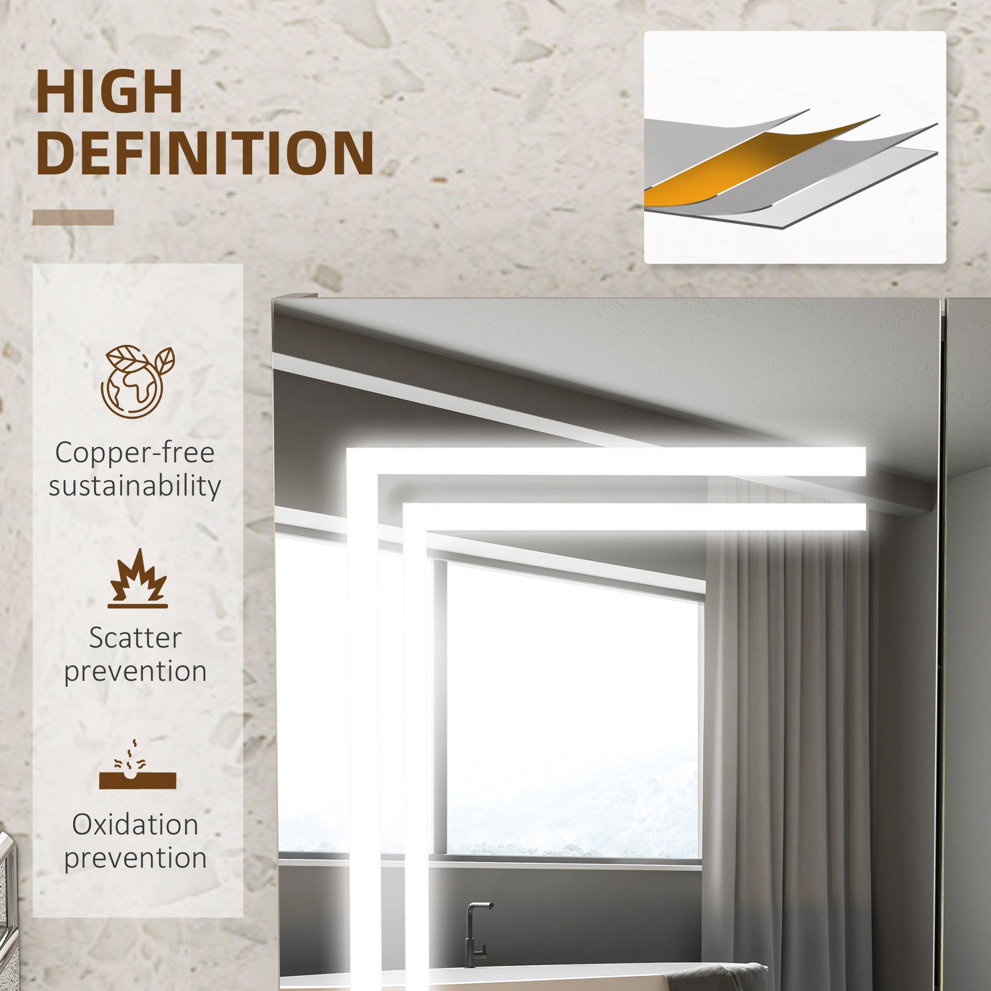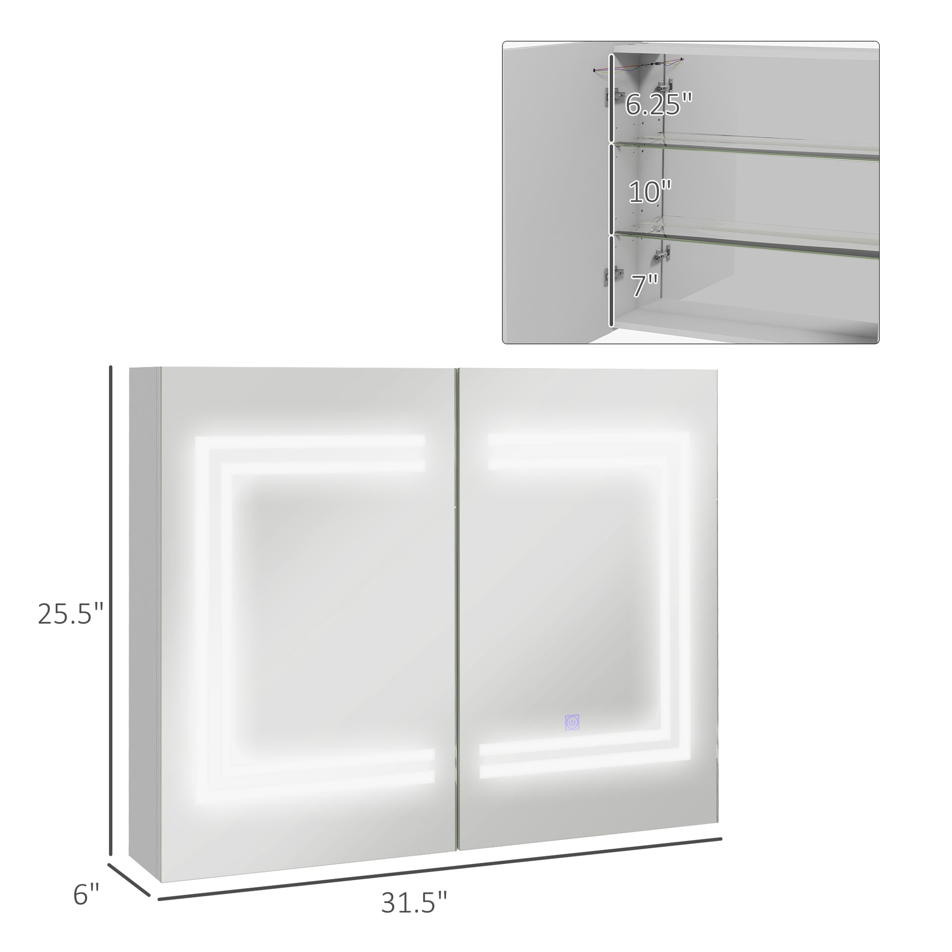 Kleankin Lighted Medicine Cabinet With Mirror, 26" X 32" Wall Mounted Bathroom Mirror With Storage, Bathroom Wall Cabinet With Usb Charge, 3 Color Lights And Adjustable Shelf, High Gloss White White Mdf