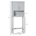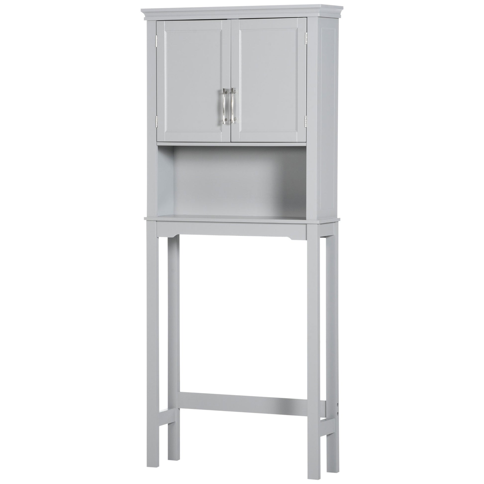 Kleankin Modern Over The Toilet Storage Cabinet, Double Door Bathroom Organizer With Inner Adjustable Shelf And Open Shelf, Grey Grey Mdf