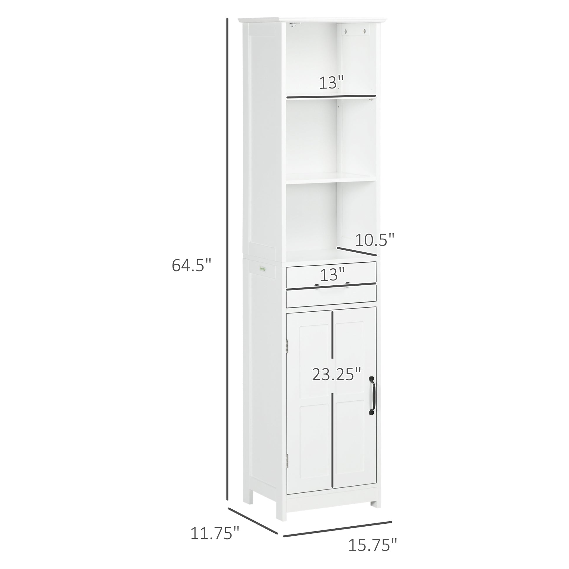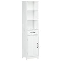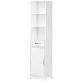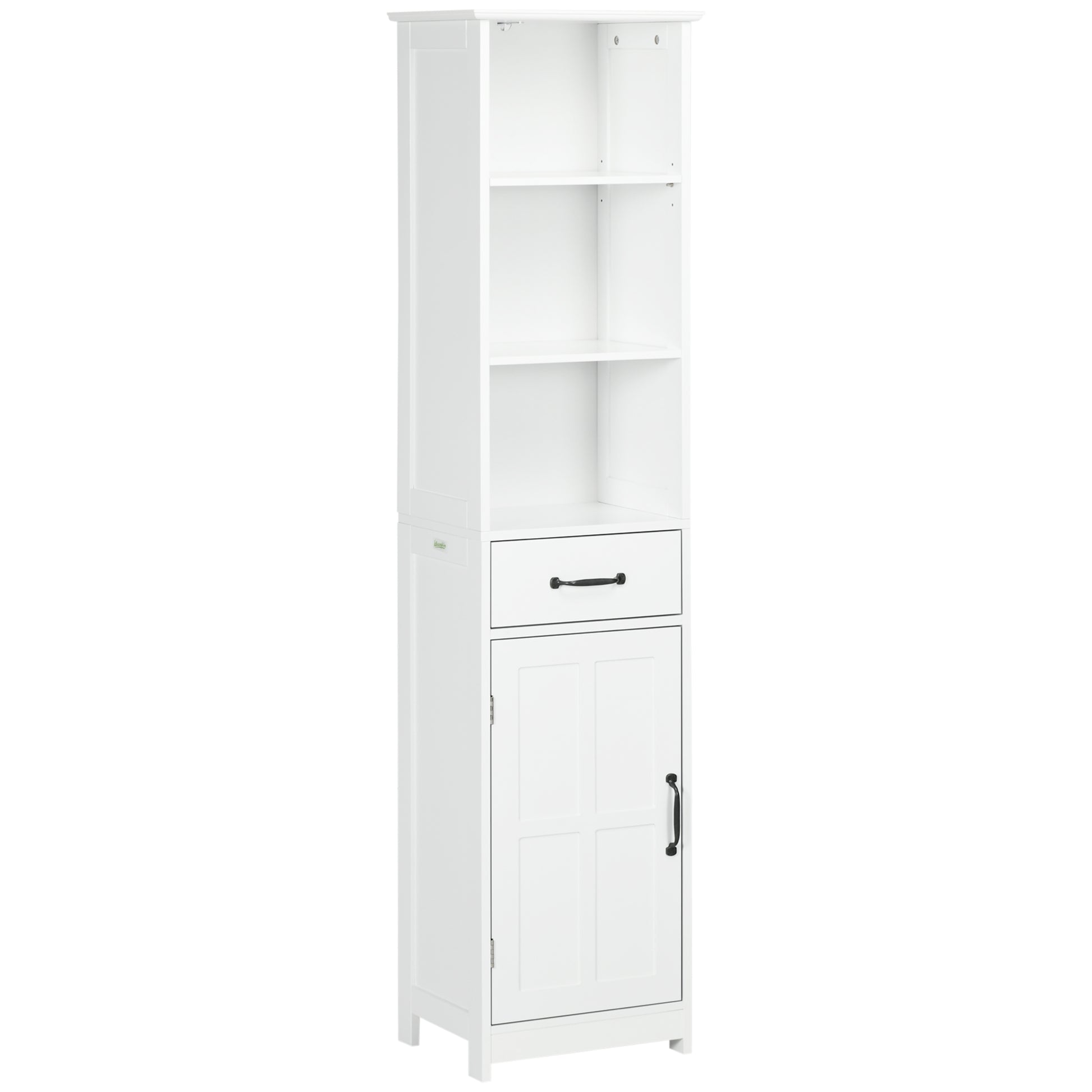 Kleankin Slim Bathroom Storage Cabinet, Tall Bathroom Cabinet, Linen Tower With 3 Open Shelves, Drawer, Recessed Door And Adjustable Shelf, White White Mdf
