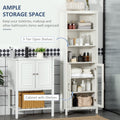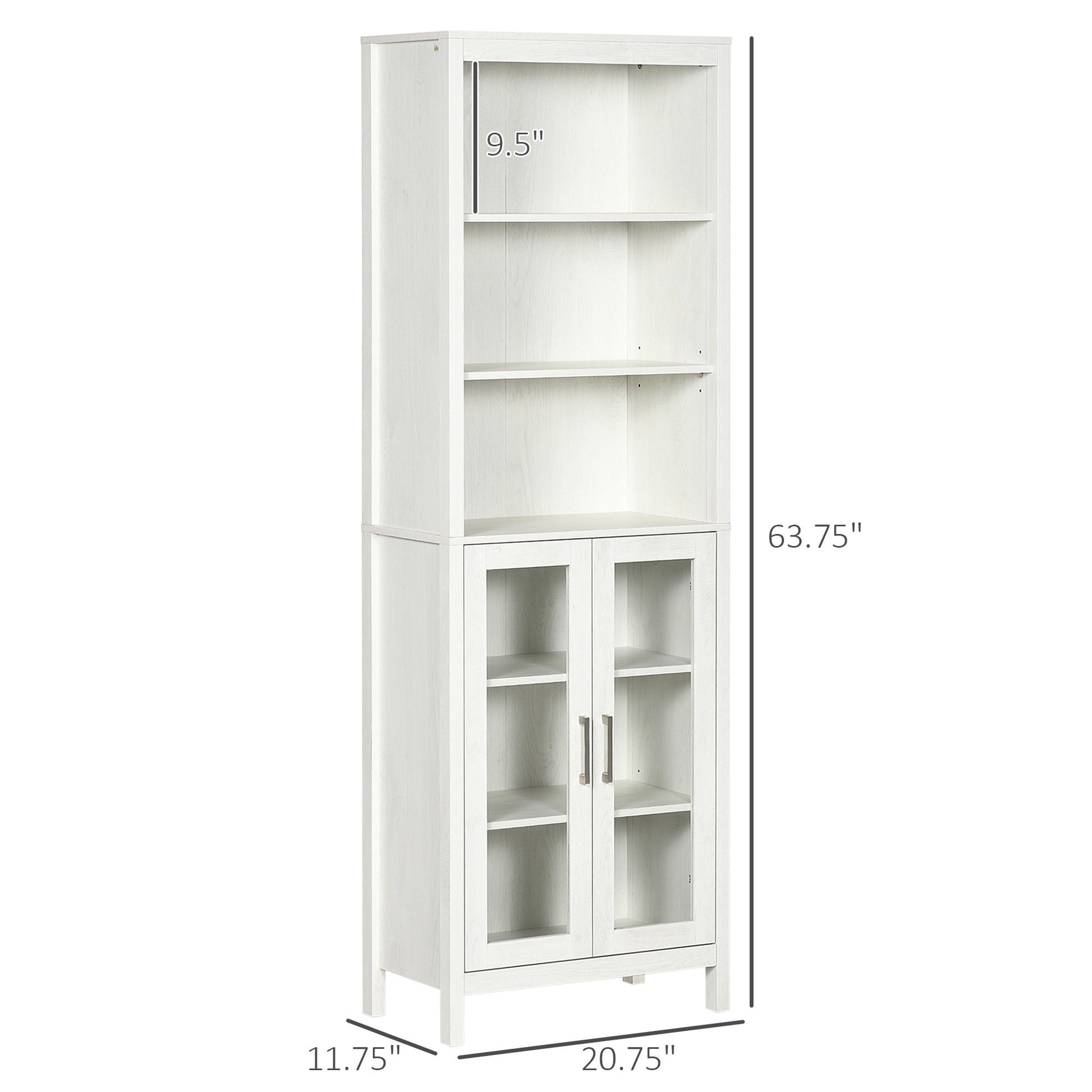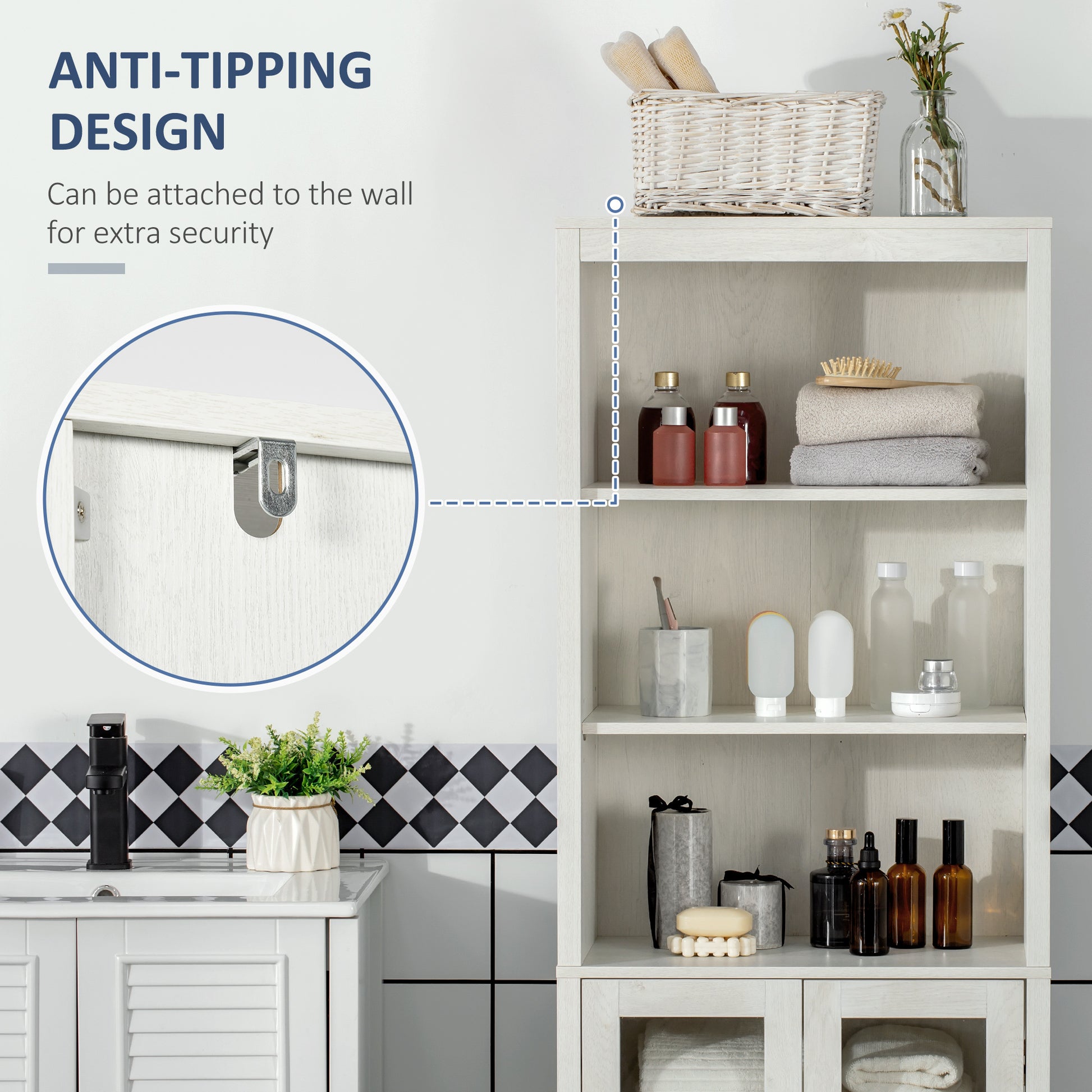 Kleankin Tall Bathroom Storage Cabinet With 3 Tier Shelf, Glass Door Cabinet, Freestanding Linen Tower With Adjustable Shelves, Antique White White Particle Board