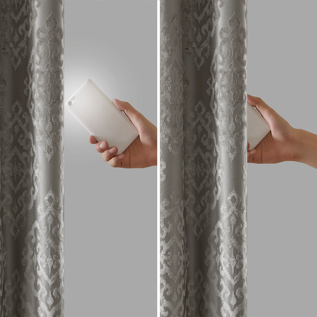 Knitted Jacquard Da Total Blackout Grommet Top Curtain Panel Only 1 Pc Panel Charcoal Polyester