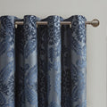 Knitted Jacquard Paisley Total Blackout Grommet Top Curtain Panel Only 1 Pc Panel Navy Polyester