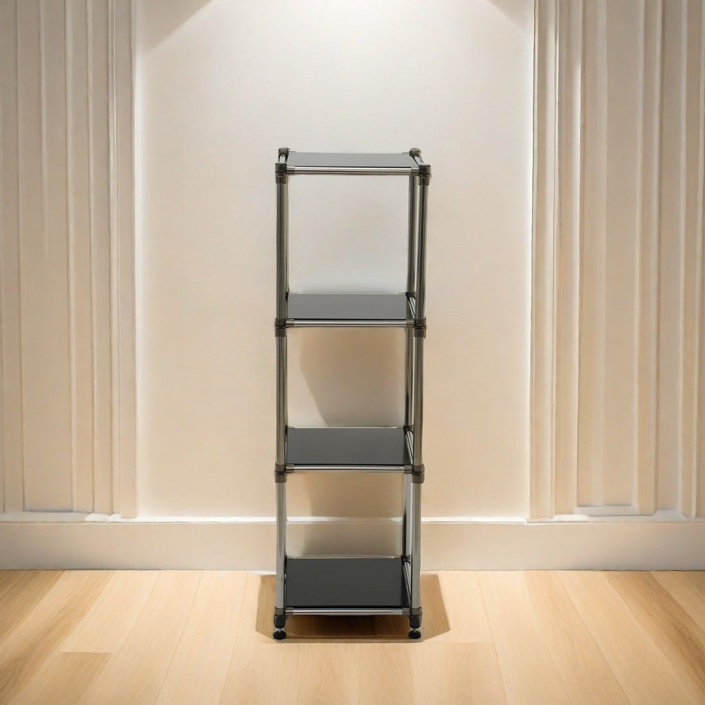 Korean Black 4 Tier Heavy Duty Stainless Steel Storage Shelving Unit, 100Lbs Shelf 49"H X 14.9"W X 13.7"D For Indoor Outdoor Organizationmodular Rack, Extremely Durabl Black Primary Living Space