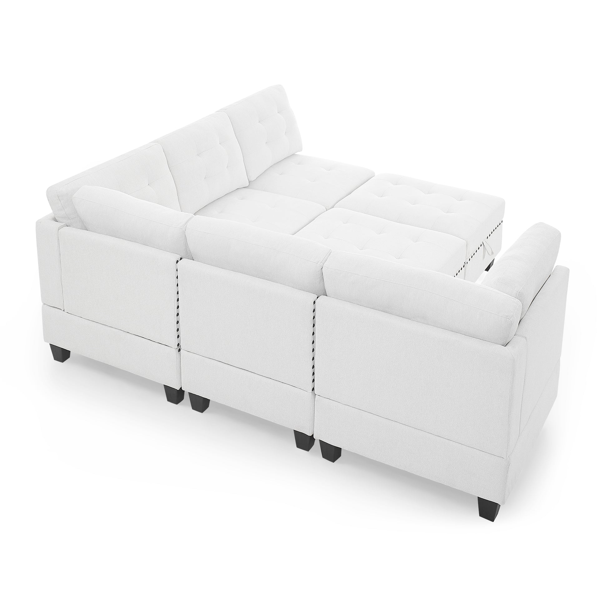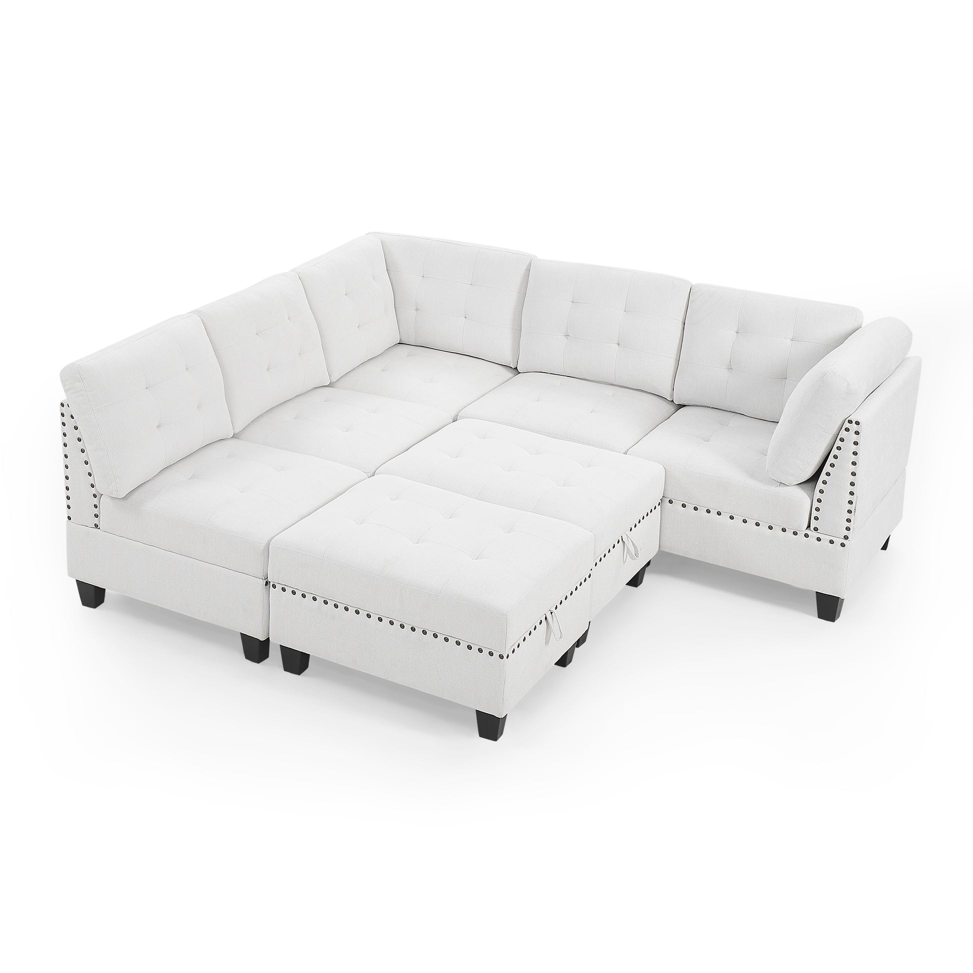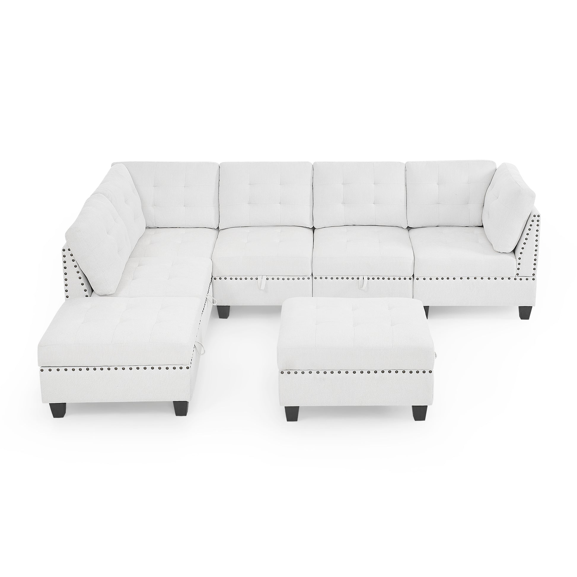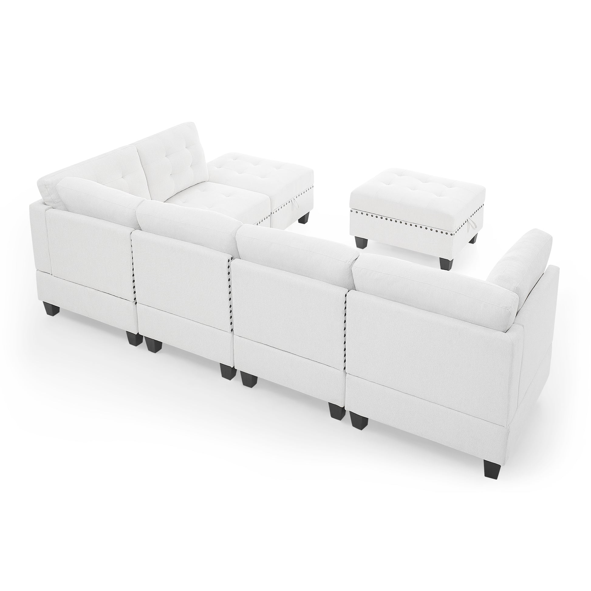 L Shape Modular Sectional Sofa,Diy Combination,Includes Three Single Chair ,Two Corner And Two Ottoman,Ivory Chenille Ivory Foam Chenille