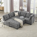 L Shape Modular Sectional Sofa,Diy Combination,Includes Three Single Chair ,Two Corner And Two Ottoman,Grey Chenille Grey Foam Chenille