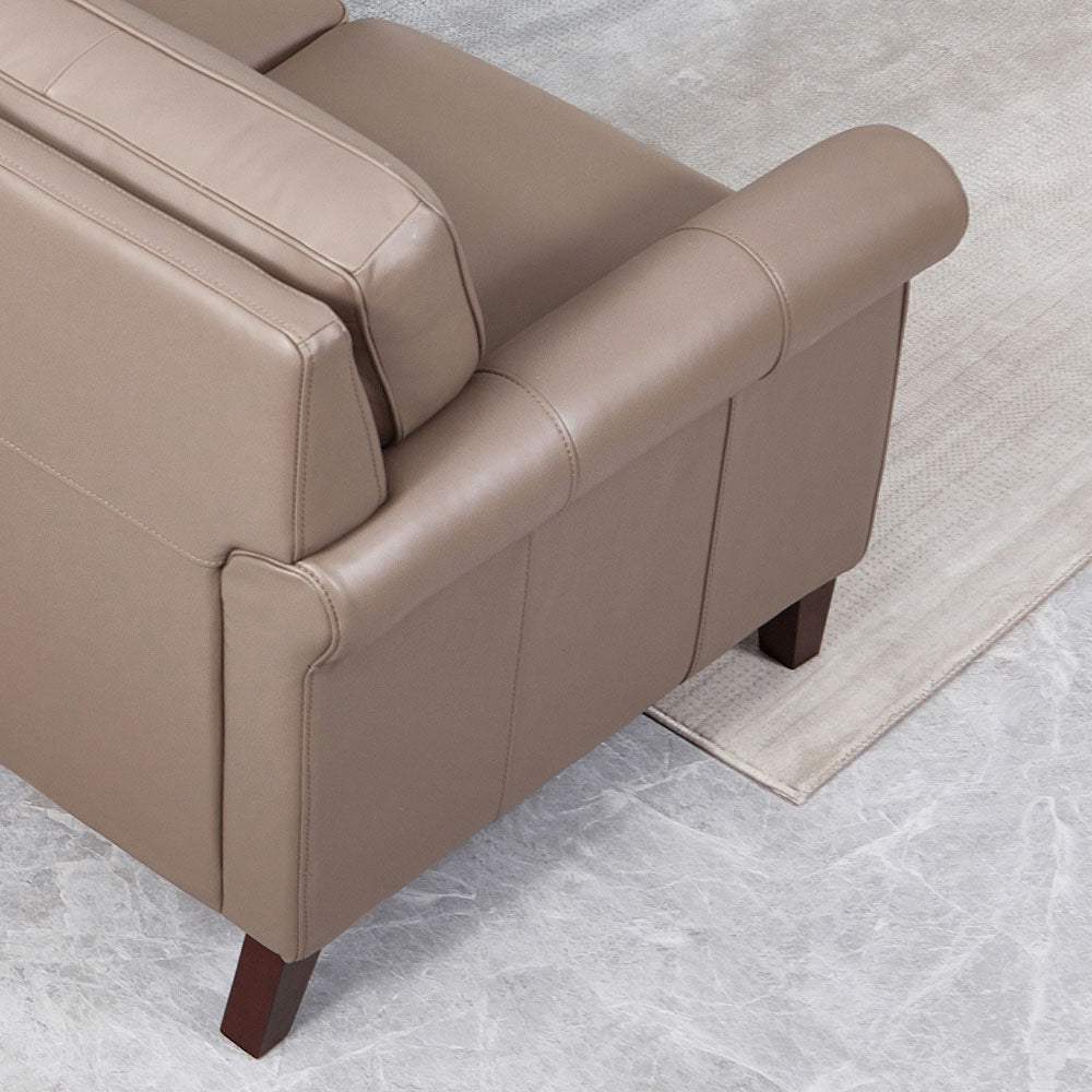 Laa Leather Sectional Brown Genuine Leather Wood Primary Living Space Medium Firm Cushion Back Mid Century Modern L Shaped Eucalyptus Rolled Arms Down Filling Leather 5 Seat