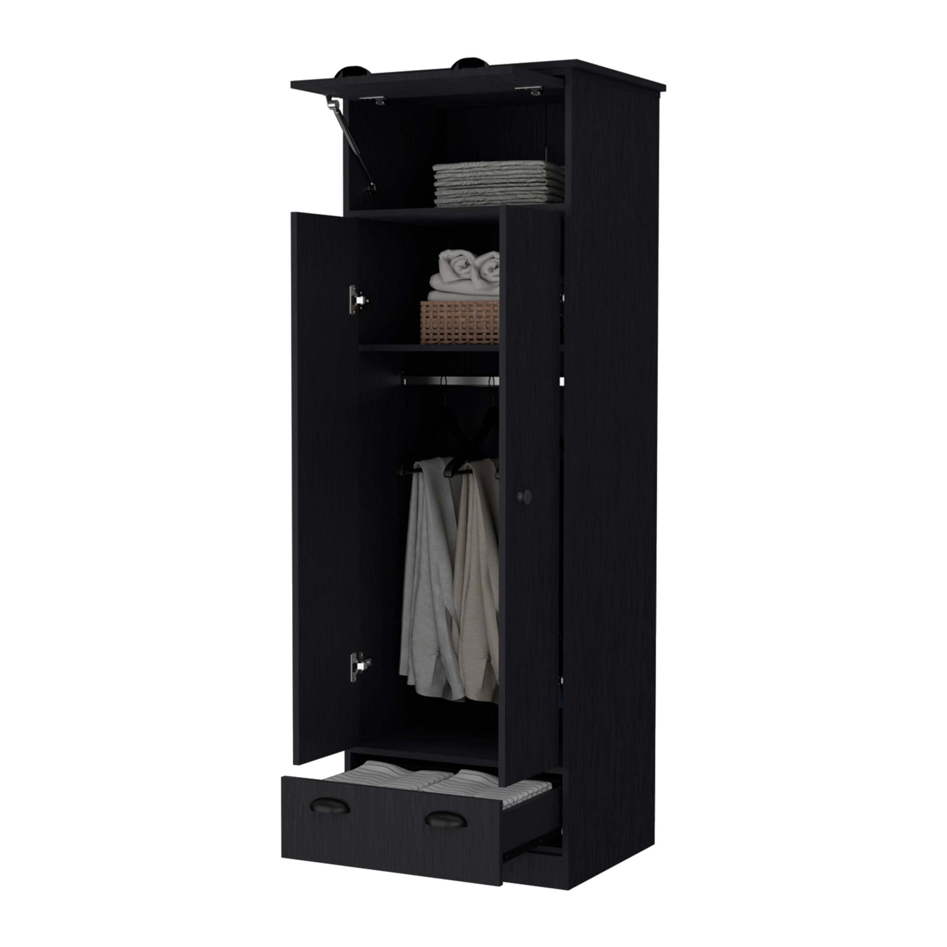 Lakewood Double Door And 1 Drawer Armoire Black Black Engineered Wood