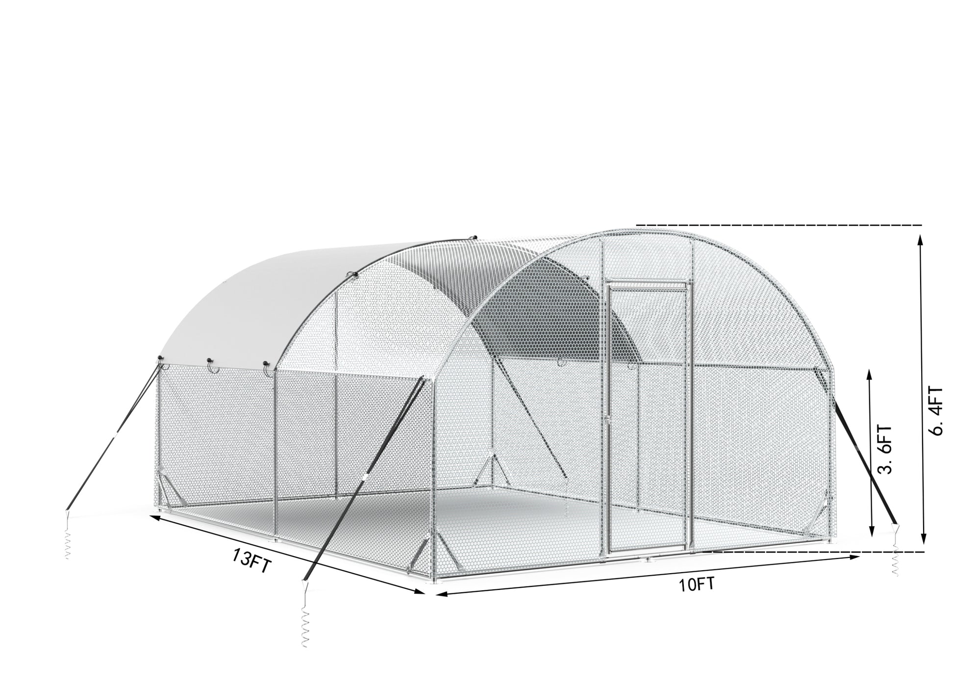 Large Metal Chicken Coop Upgrade Tri Supporting Wire Mesh Chicken Run,Chicken Pen With Water Resident & Anti Uv Cover,Duck Rabbit House Outdoor 10'W X 13'L X 6.5'H Silver Metal