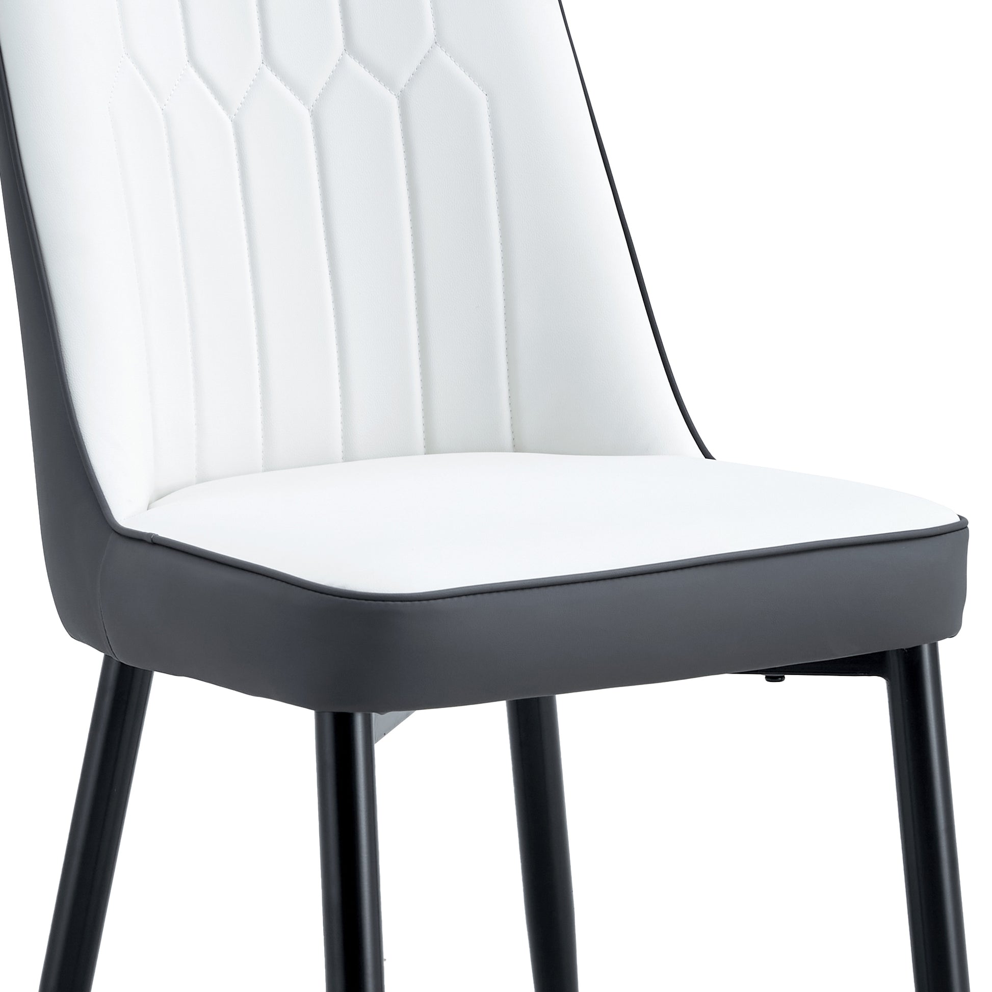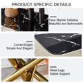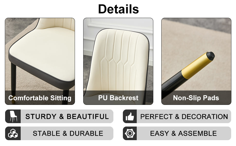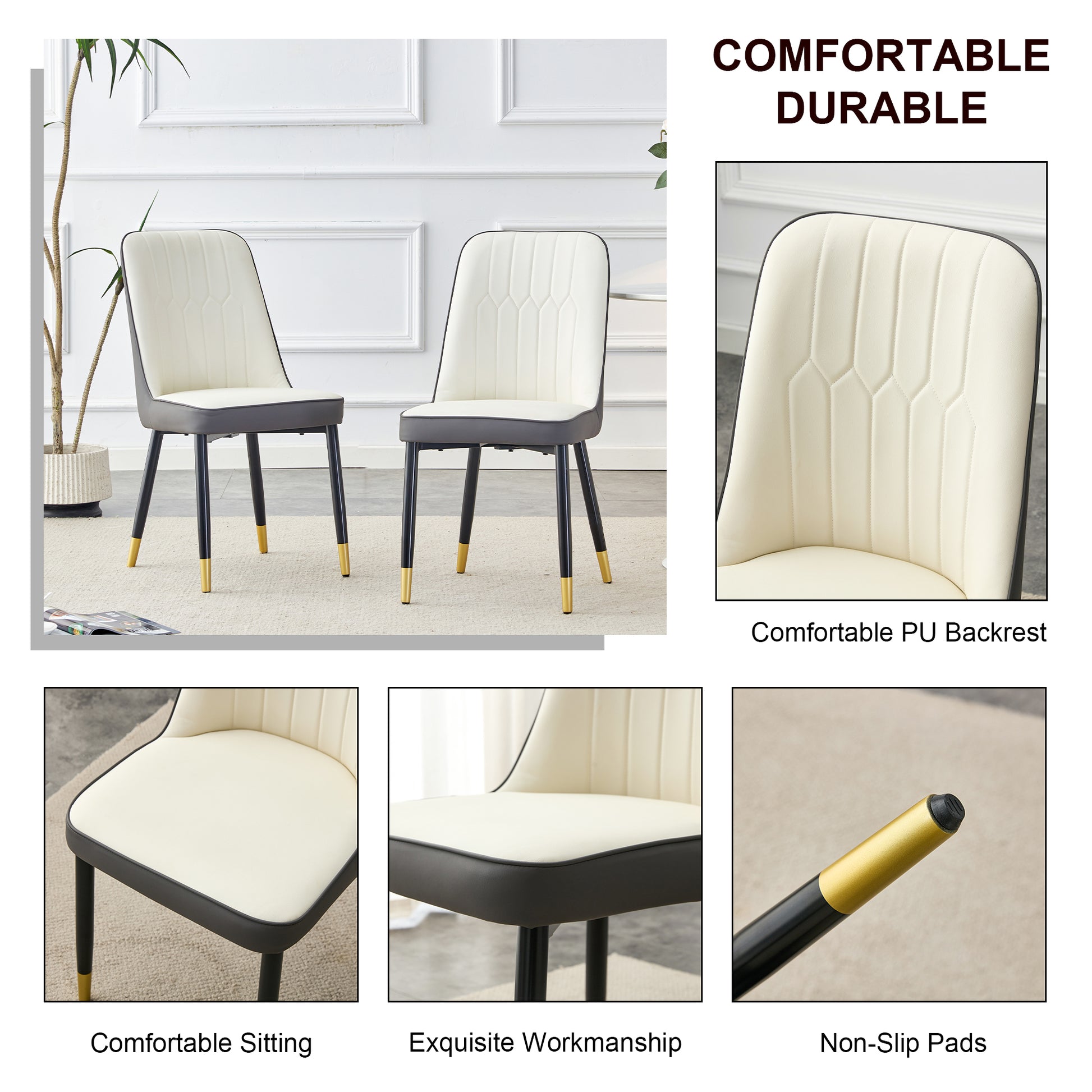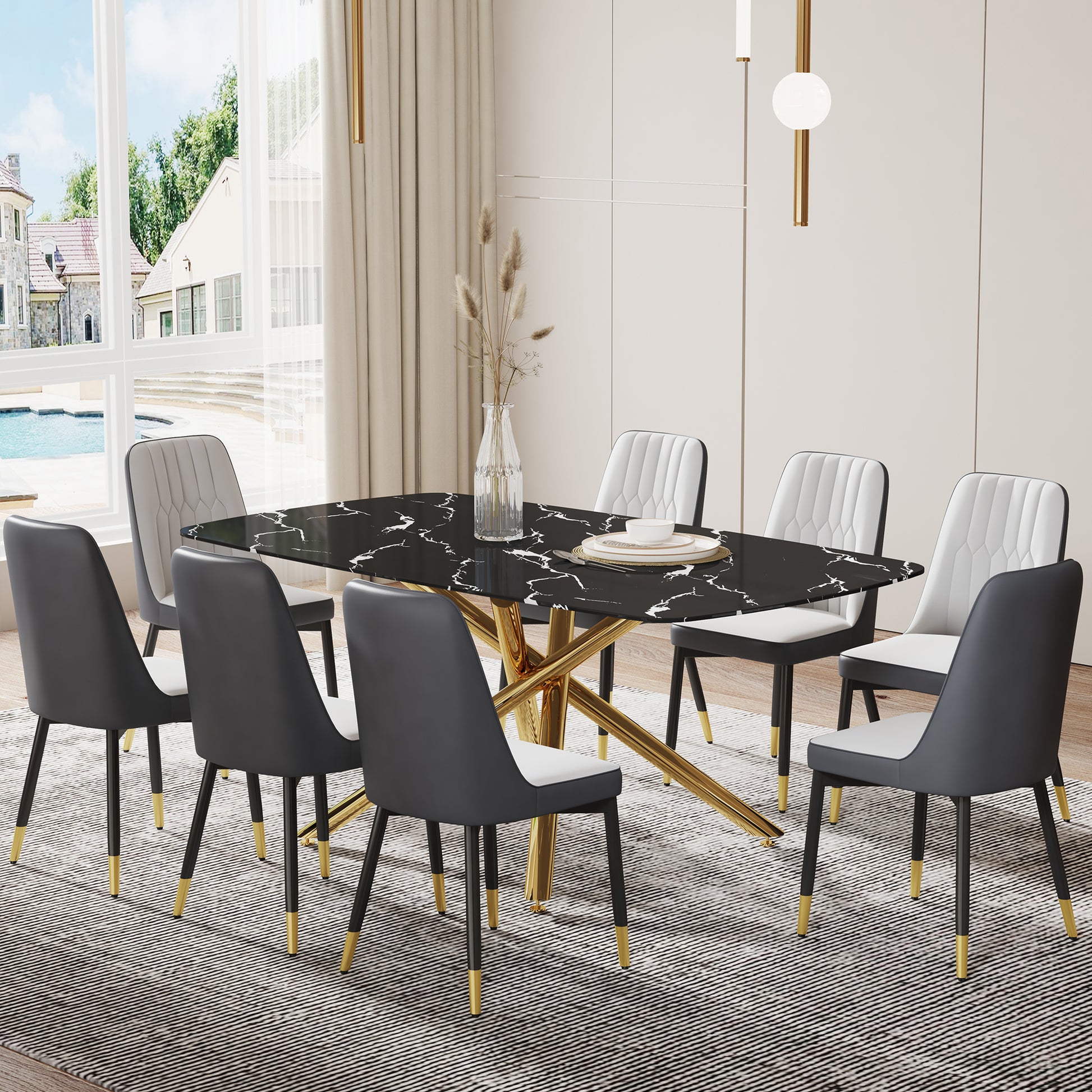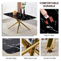 Large Modern Minimalist Rectangular Dining Table With 0.39 "Imitation Marble Black Tabletop And Golden Metal Legs, Paired With Chairs With Pu Cushions And Black Metal Legs. F 1537 C 007 Black Gold Glass Metal