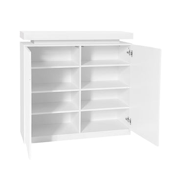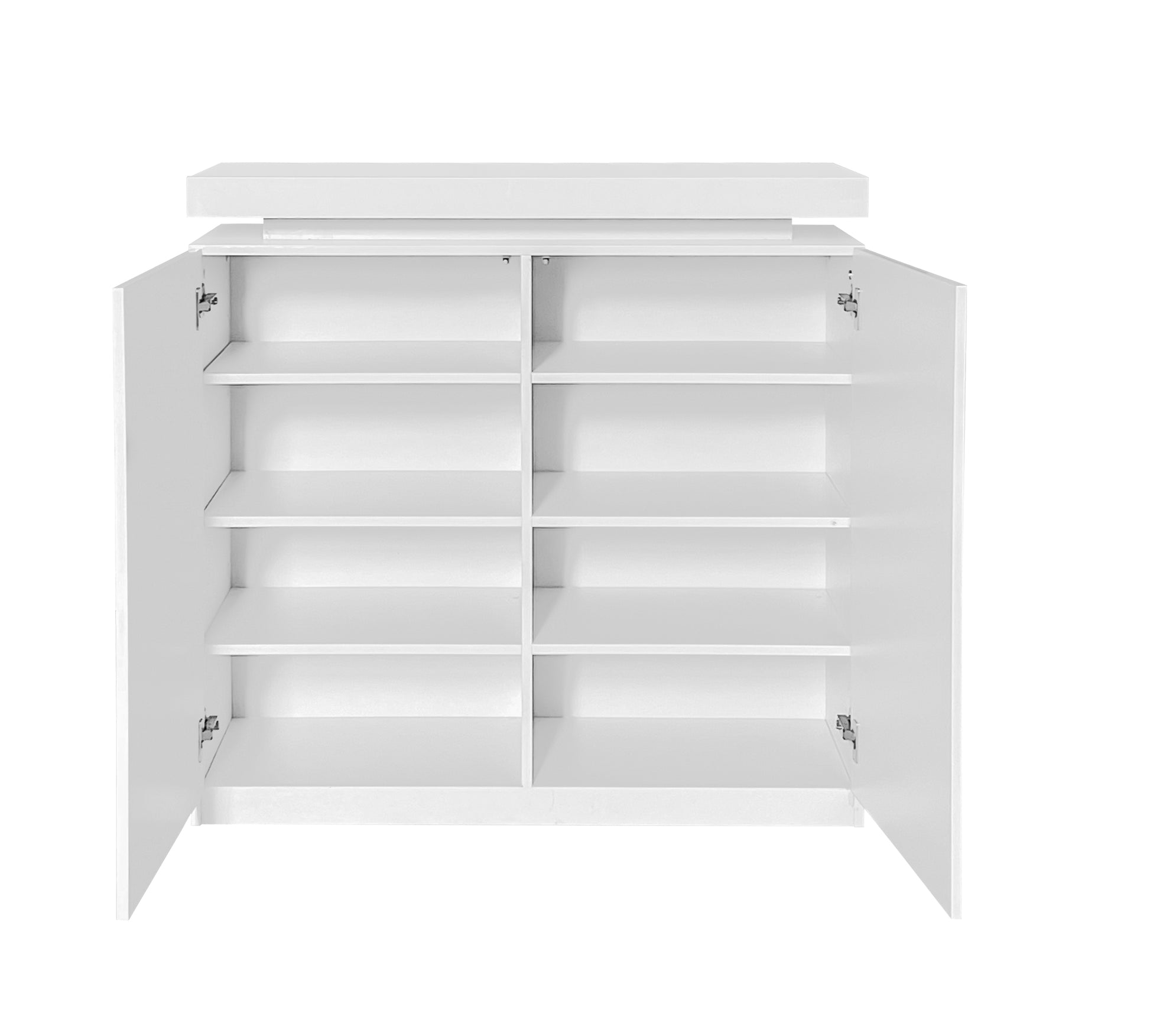 Large Spaces Shoe Cabinet High Glossy White Color With Led Light Have Moveable Shelves White Particle Board