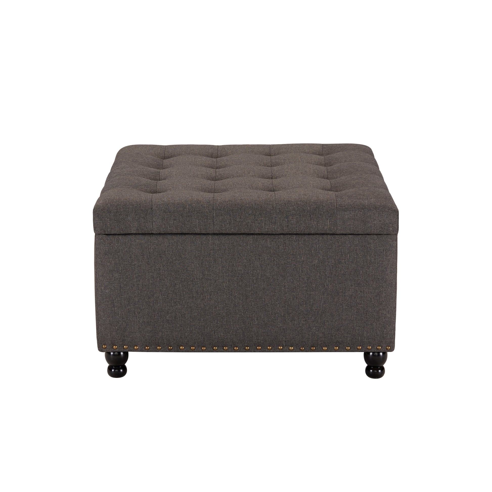 Large Square Storage Ottoman Bench, Tufted Upholstered Coffee Table With Storage, Oversized Storage Ottomans Toy Box Footrest For Living Room, Dark Grey Grey Wood Backless Wood Square Armless With Storage Wood Fabric