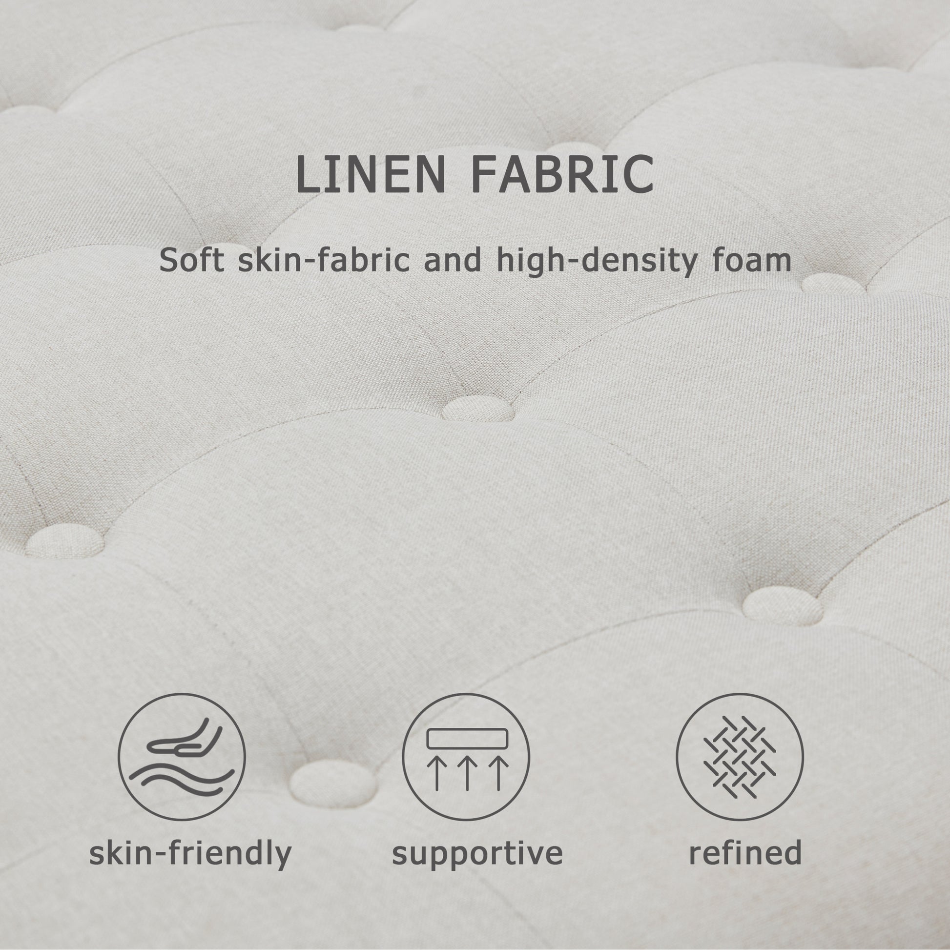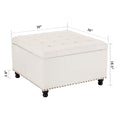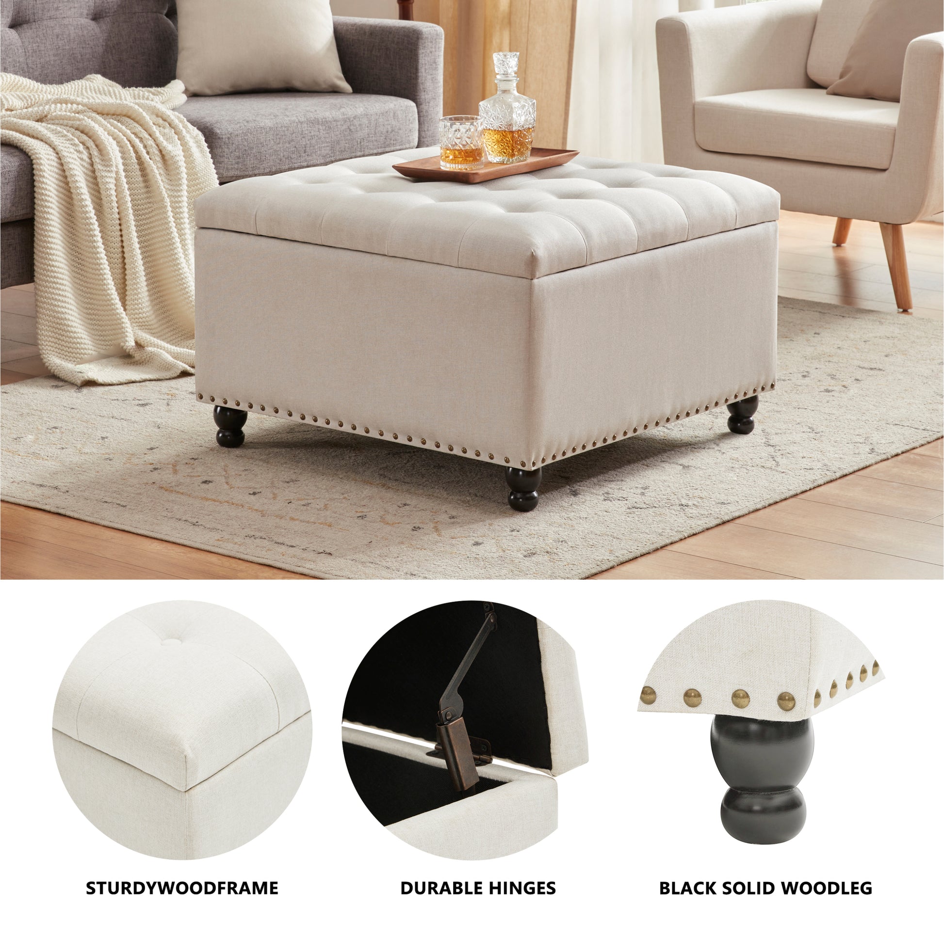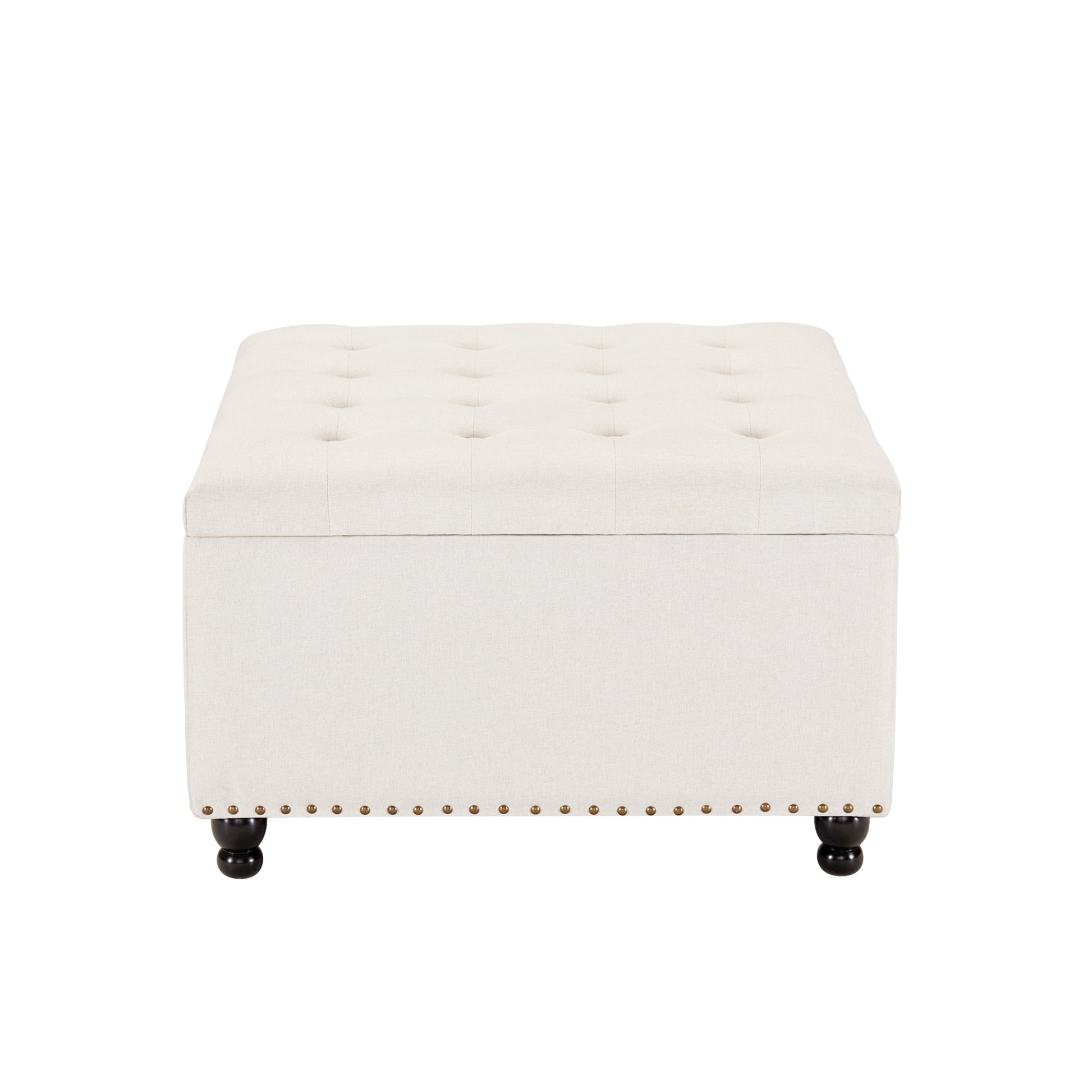 Large Square Tufted Upholstered Ottoman Bench And Coffee Table With Storage, Oversized Footrest For Living Room, Beige Beige Wood Backless Wood Square Armless With Storage Wood Fabric