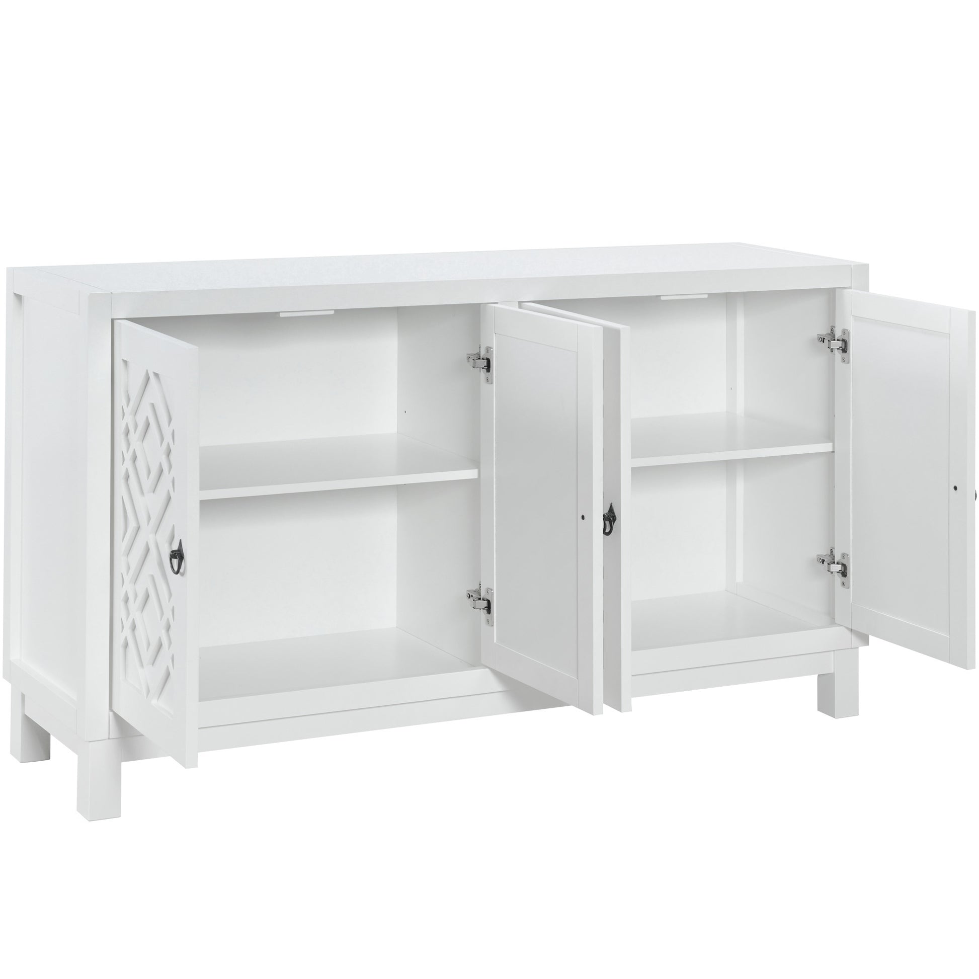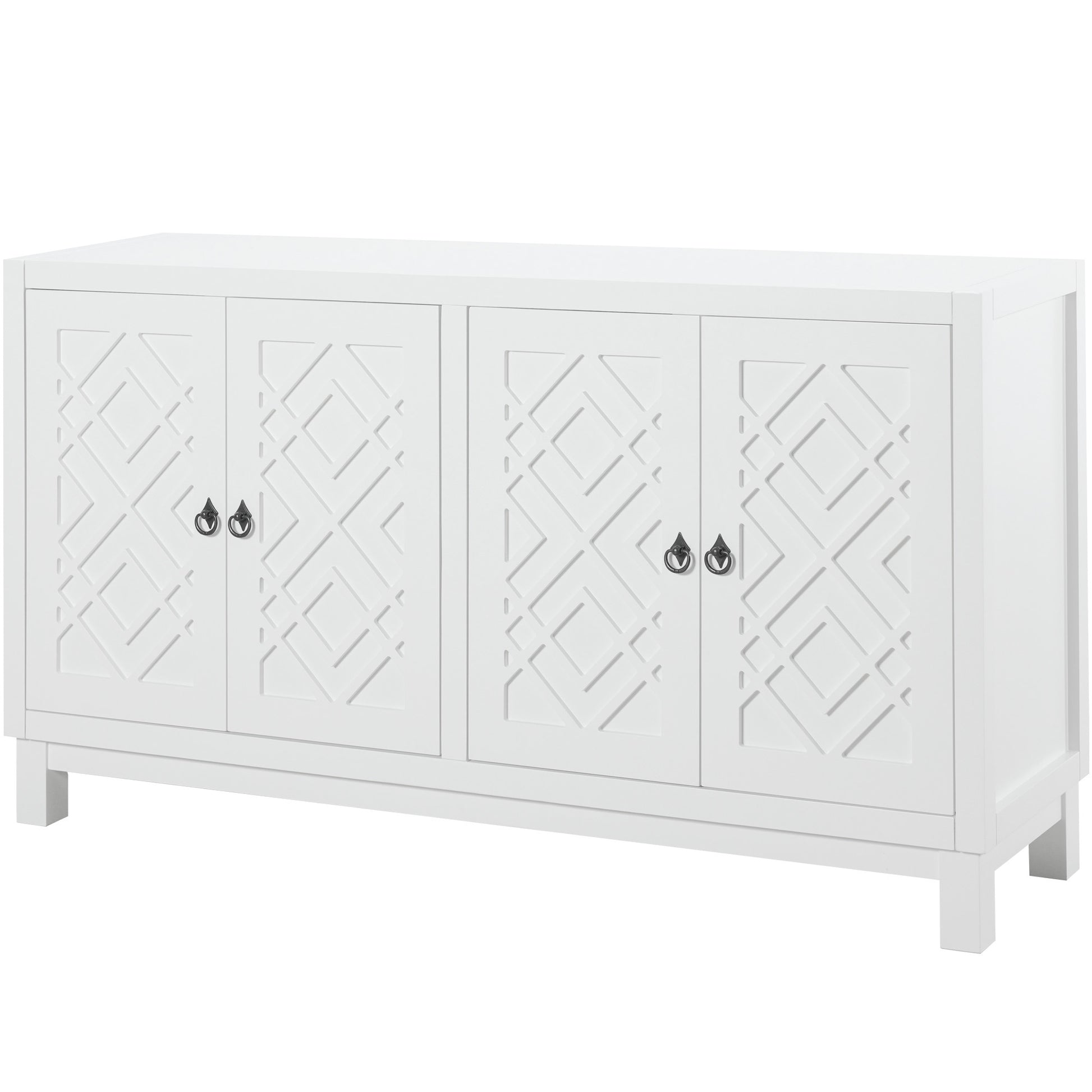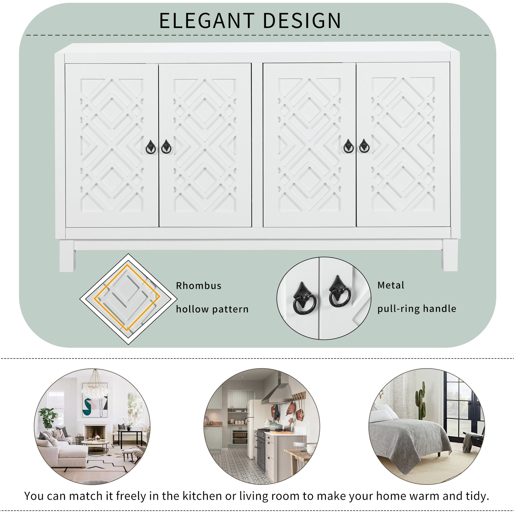Large Storage Space Sideboard, 4 Door Buffet Cabinet With Pull Ring Handles For Living Room, Dining Room White White Mdf