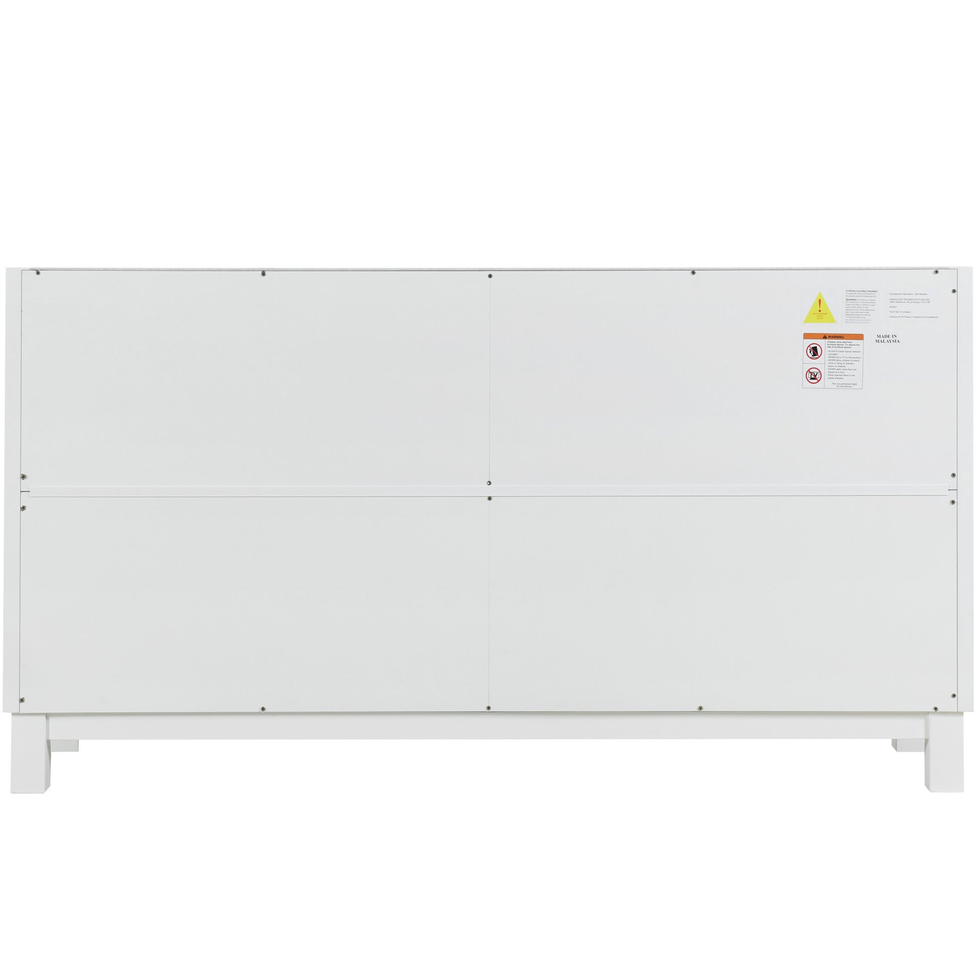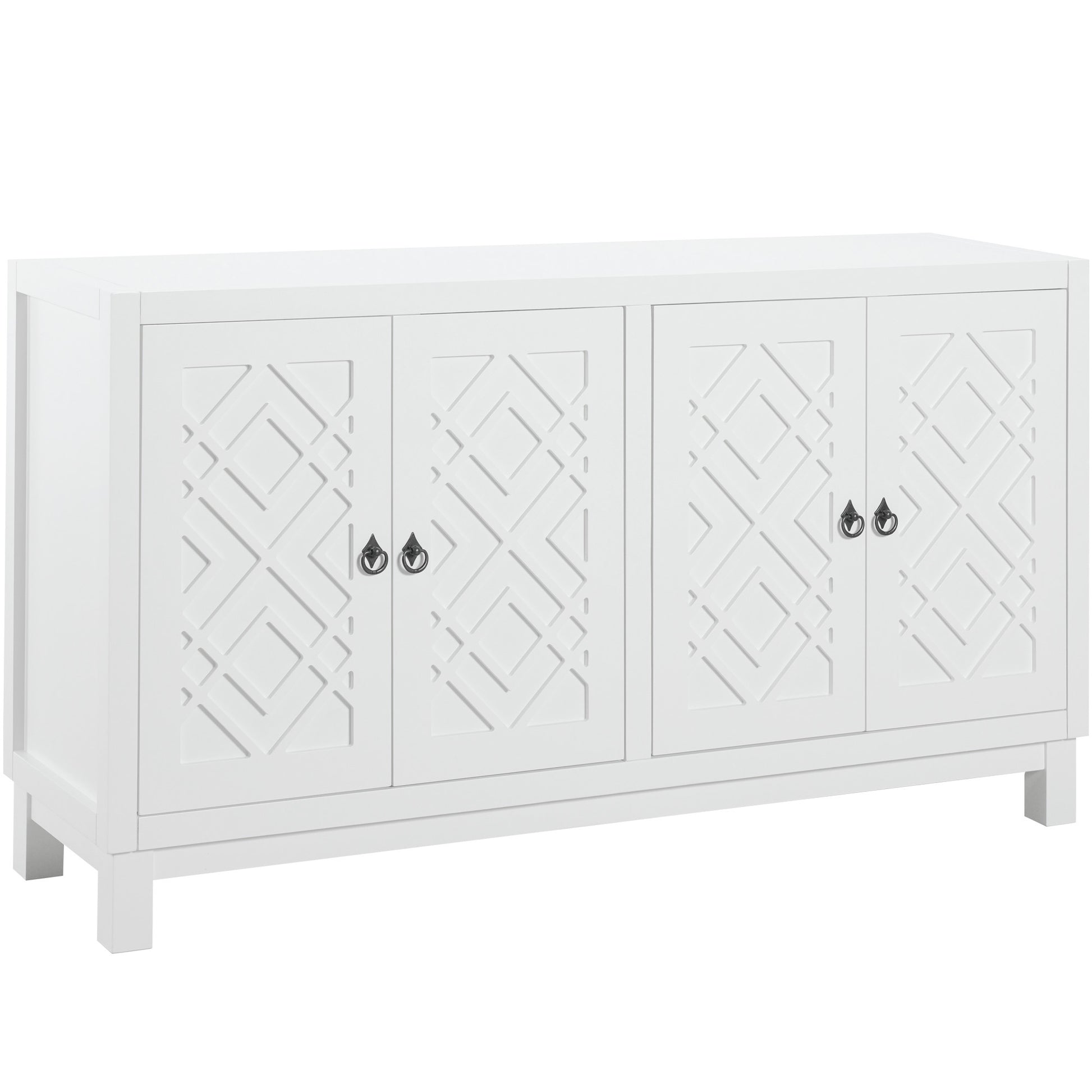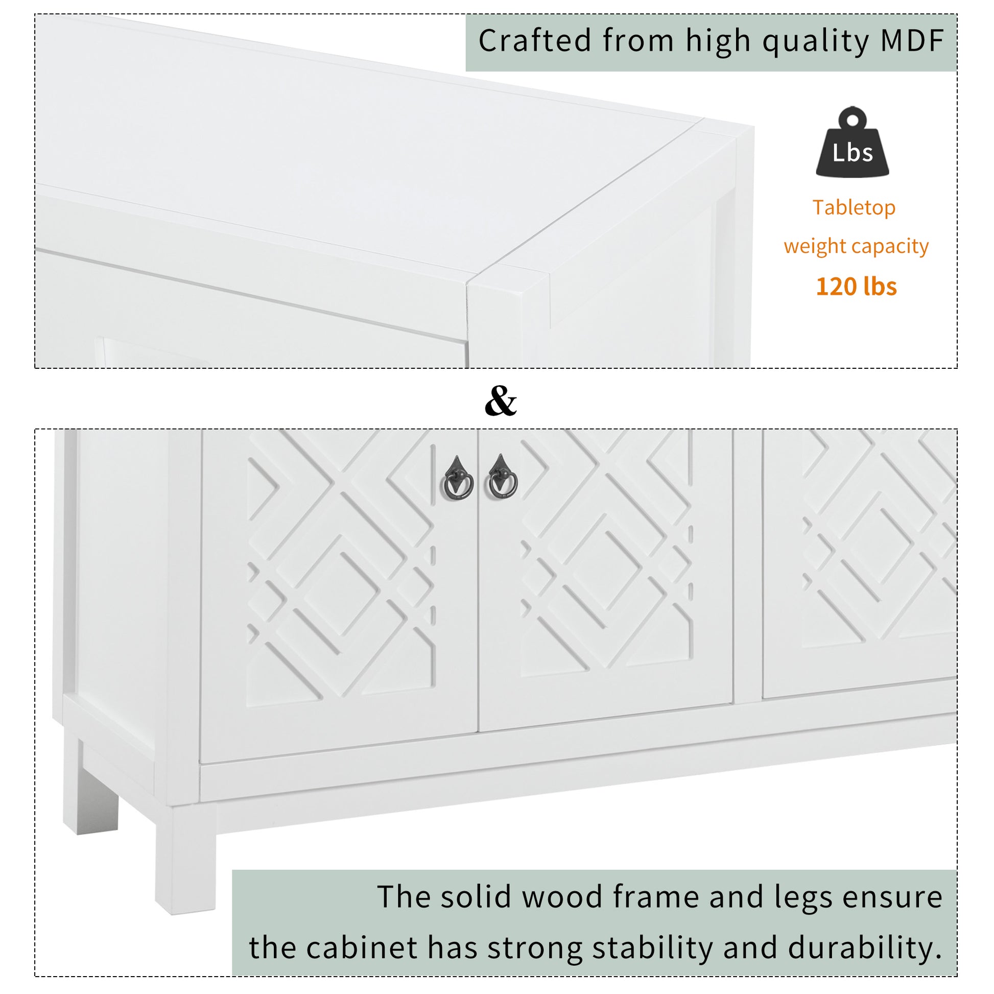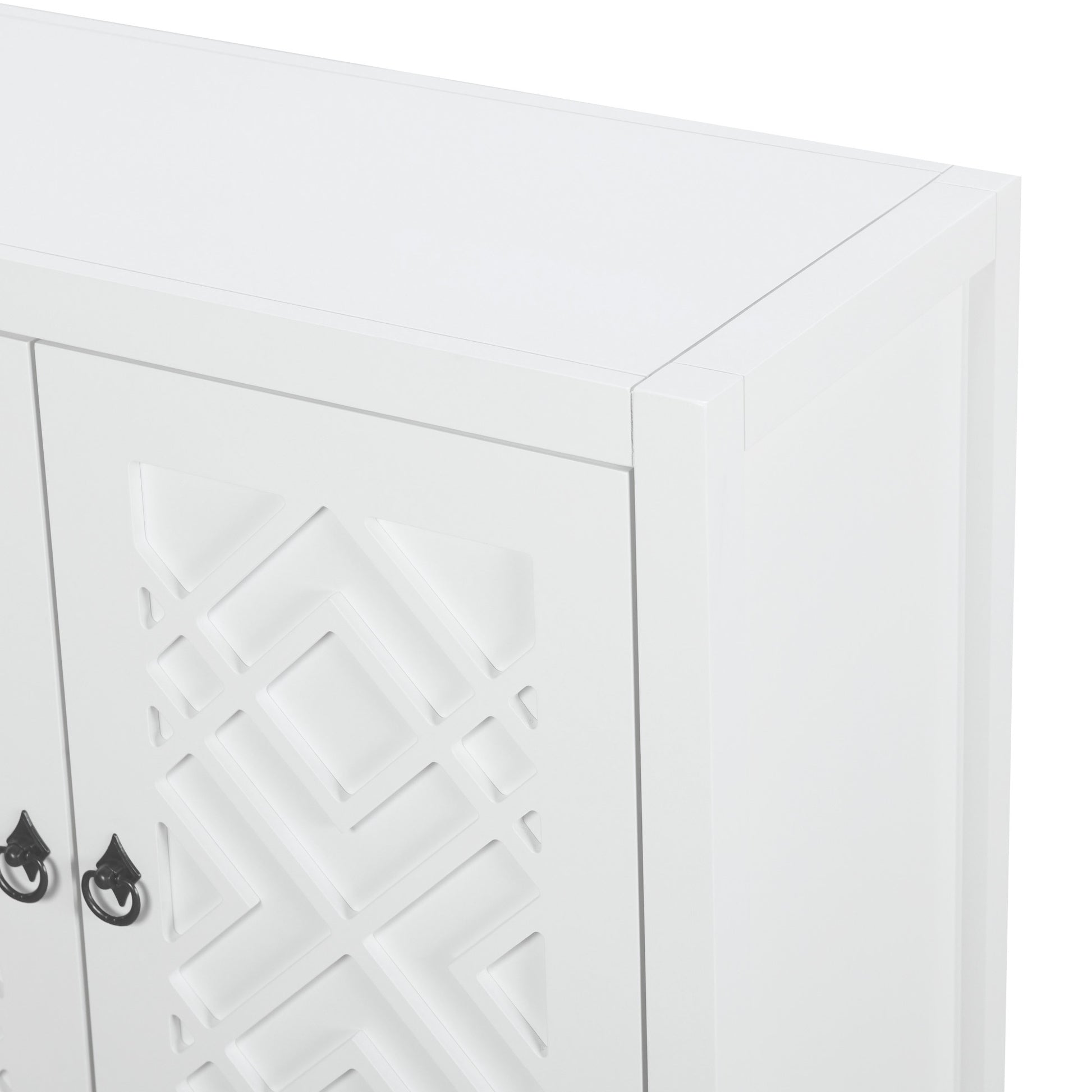 Large Storage Space Sideboard, 4 Door Buffet Cabinet With Pull Ring Handles For Living Room, Dining Room White White Mdf