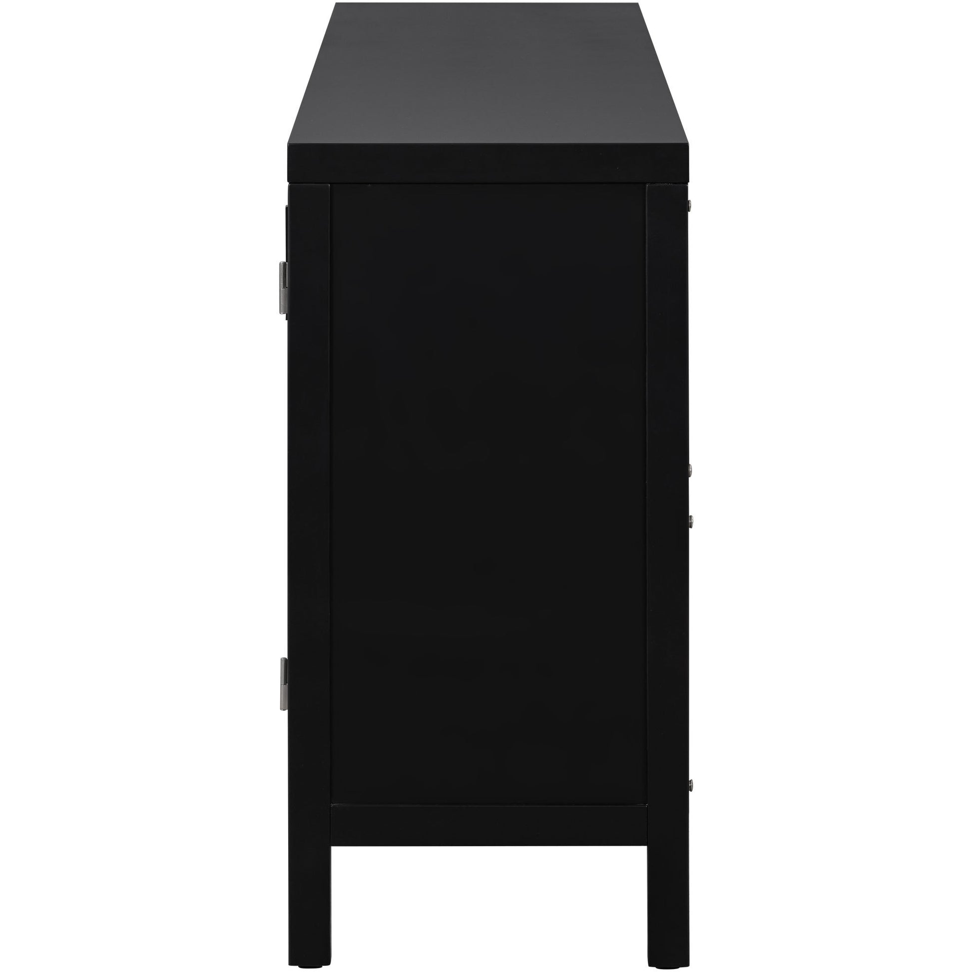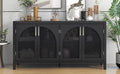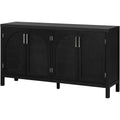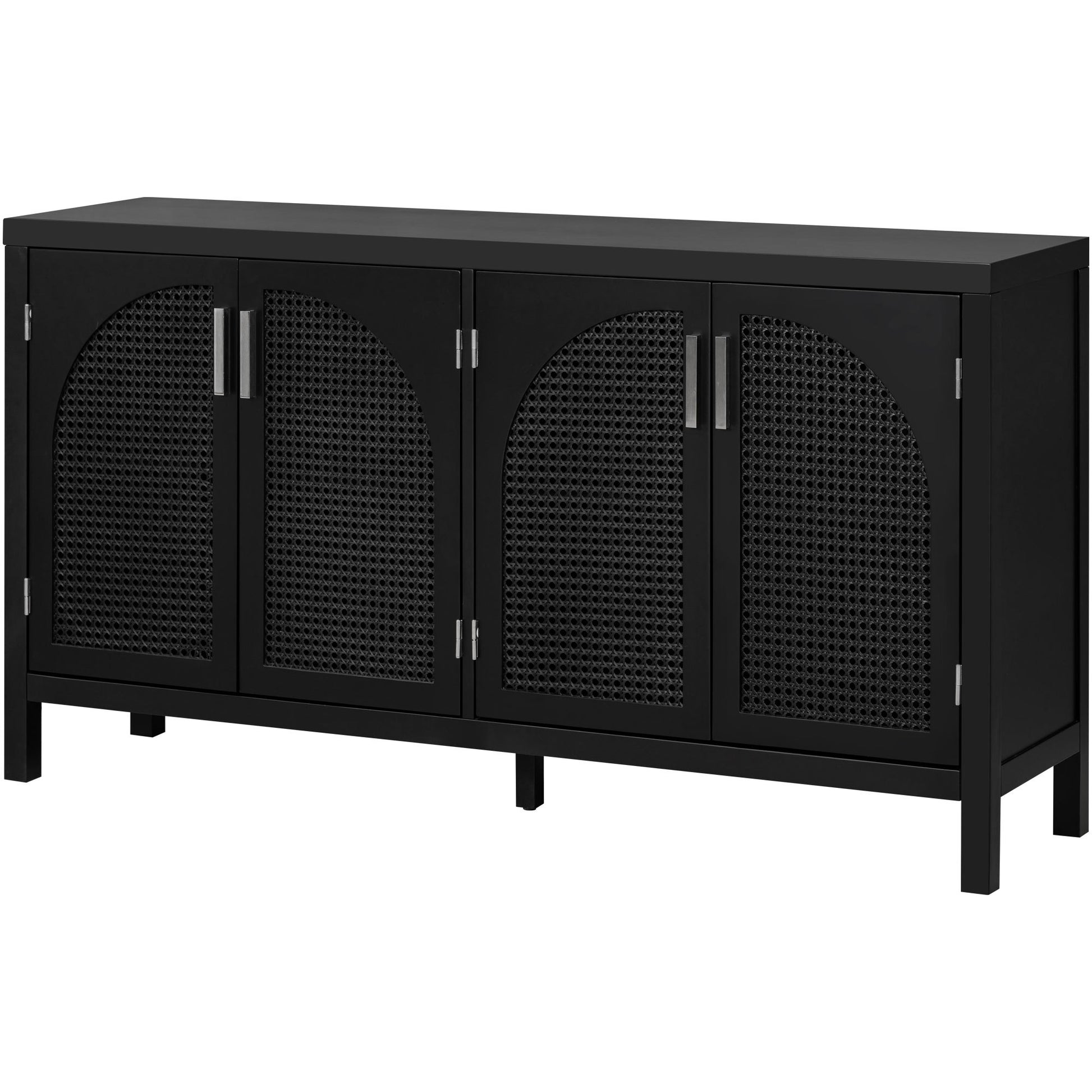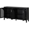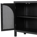 Large Storage Space Sideboard With Artificial Rattan Door And Metal Handles For Living Room And Entryway Black Black Solid Wood Mdf