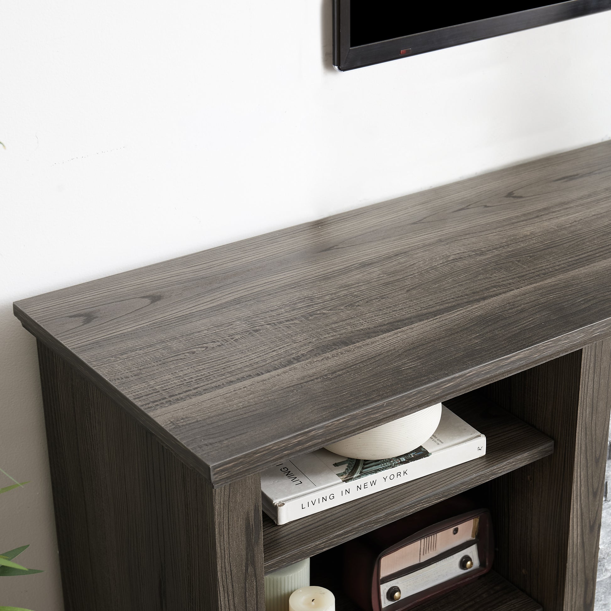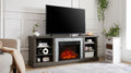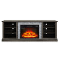 Large Tv Desk Storage Rack With Faux Stacked Stone Surround,Media Console Table With Large Storage Cabinet,Modern Tv Stand With 23" Fireplace Insert,Grey, 70.12"W*15.35"D*25.83"H Grey 70 79 Inches Mdf