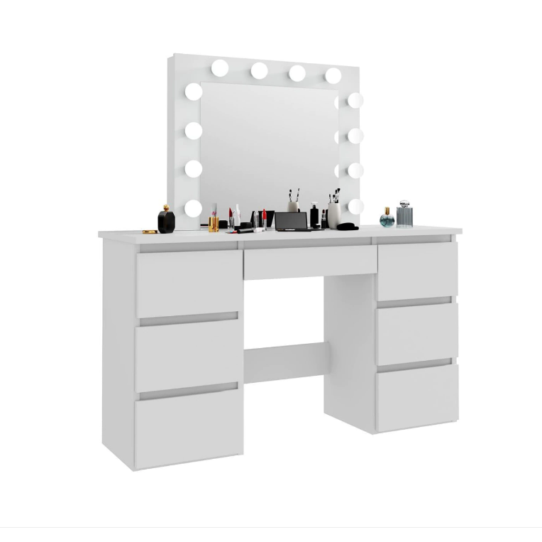 Large White Vanity Tables With Mirror And Light Matte White White Drawer 5 Drawers & Above Bedroom Extra Deep Drawers Modern 2 Or Less Poplar Mirror Included White Particle Board Mdf