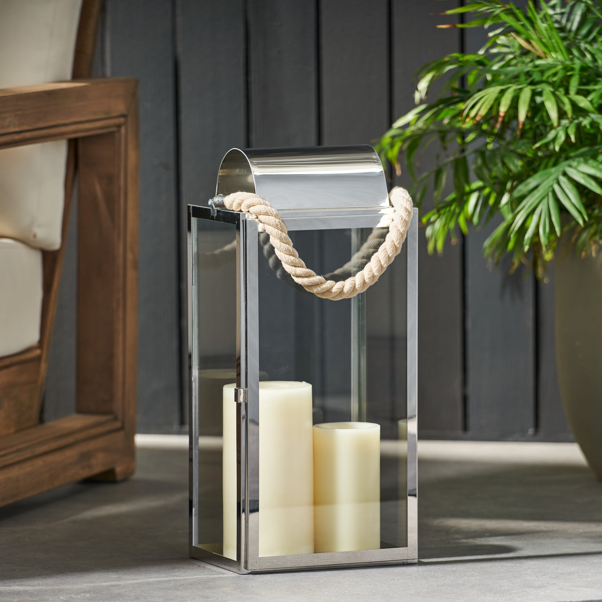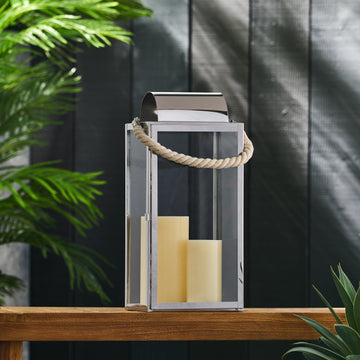 Larry 19"H Stainless Steel Lantern Silver Stainless Steel