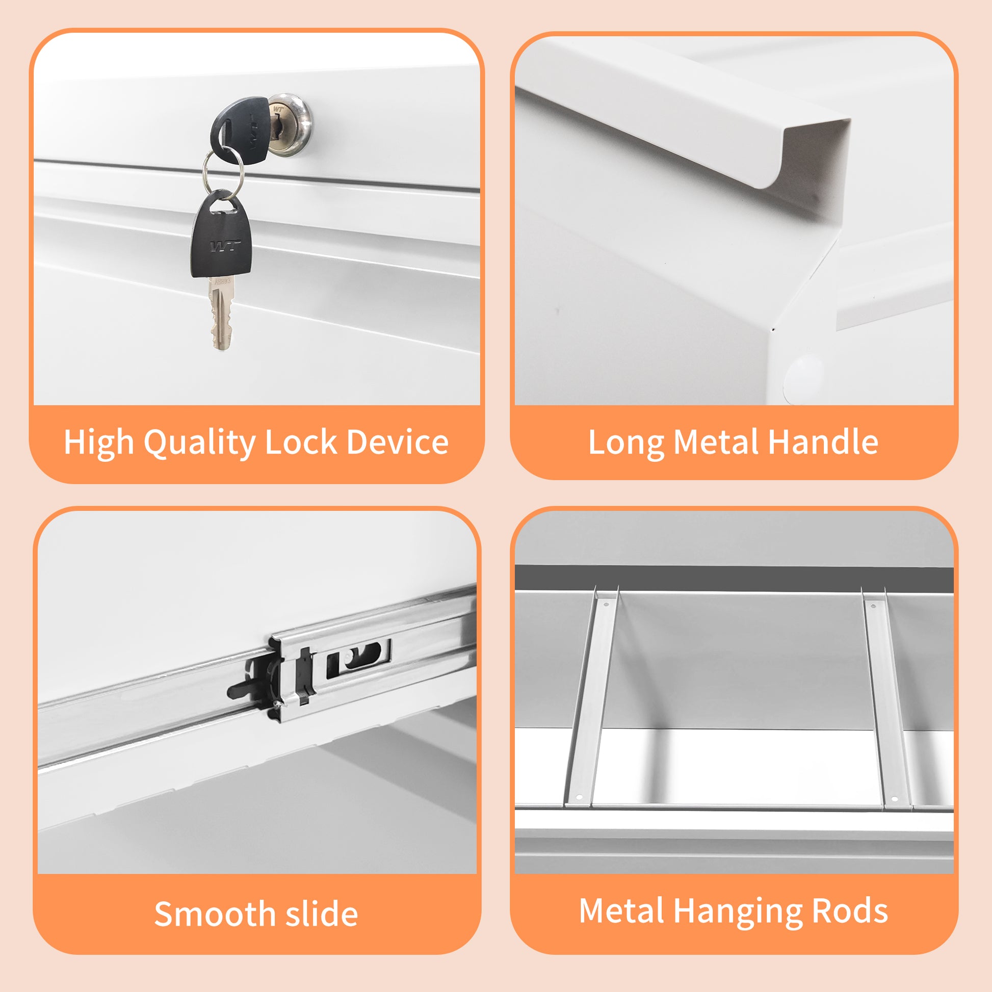 Lateral File Cabinet 2 Drawer, White Filing Cabinet With Lock, Lockable File Cabinet For Home Office, Locking Metal File Cabinet For Legal Letter A4 F4 Size Filing Cabinets 1 2 Drawers White Office