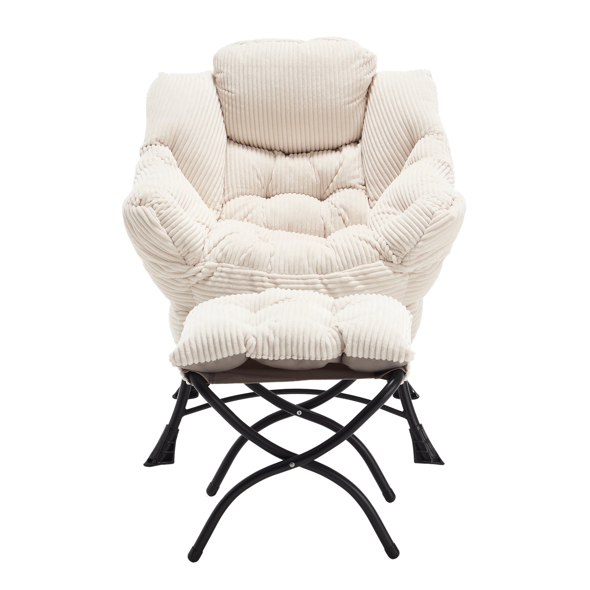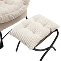 Lazy Chair With Ottoman, Modern Lounge Accent Chair With Armrests And A Side Pocket, Leisure Upholstered Sofa Chair Reading Chair With Footrest For Small Space, Corner Chair White White Cotton Steel
