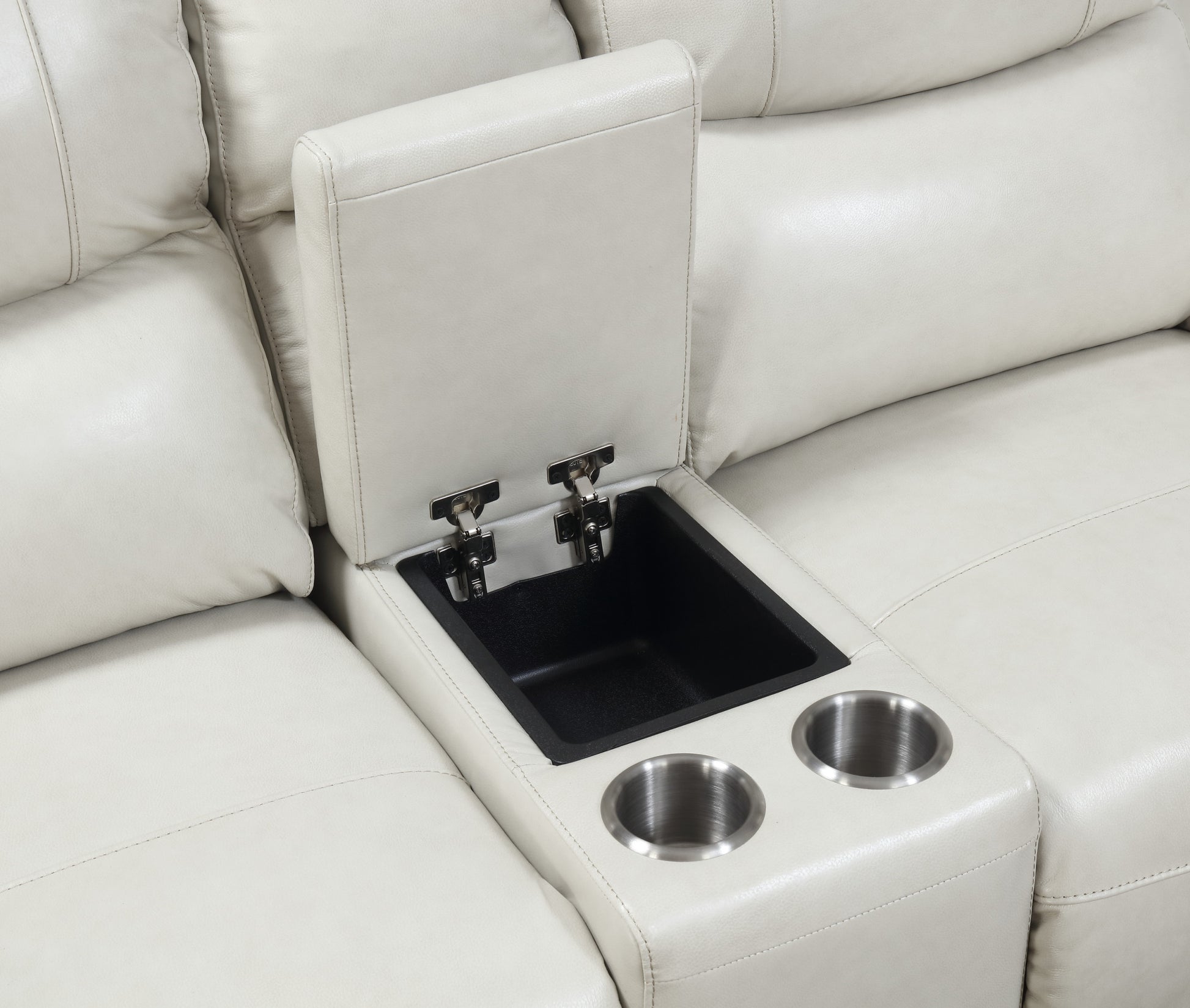 Leather Power Loveseat With Console Contemporary Style, Convenience, And Comfort Usb Charging, Cup Holders, Hidden Storage Ivory Foam Leather