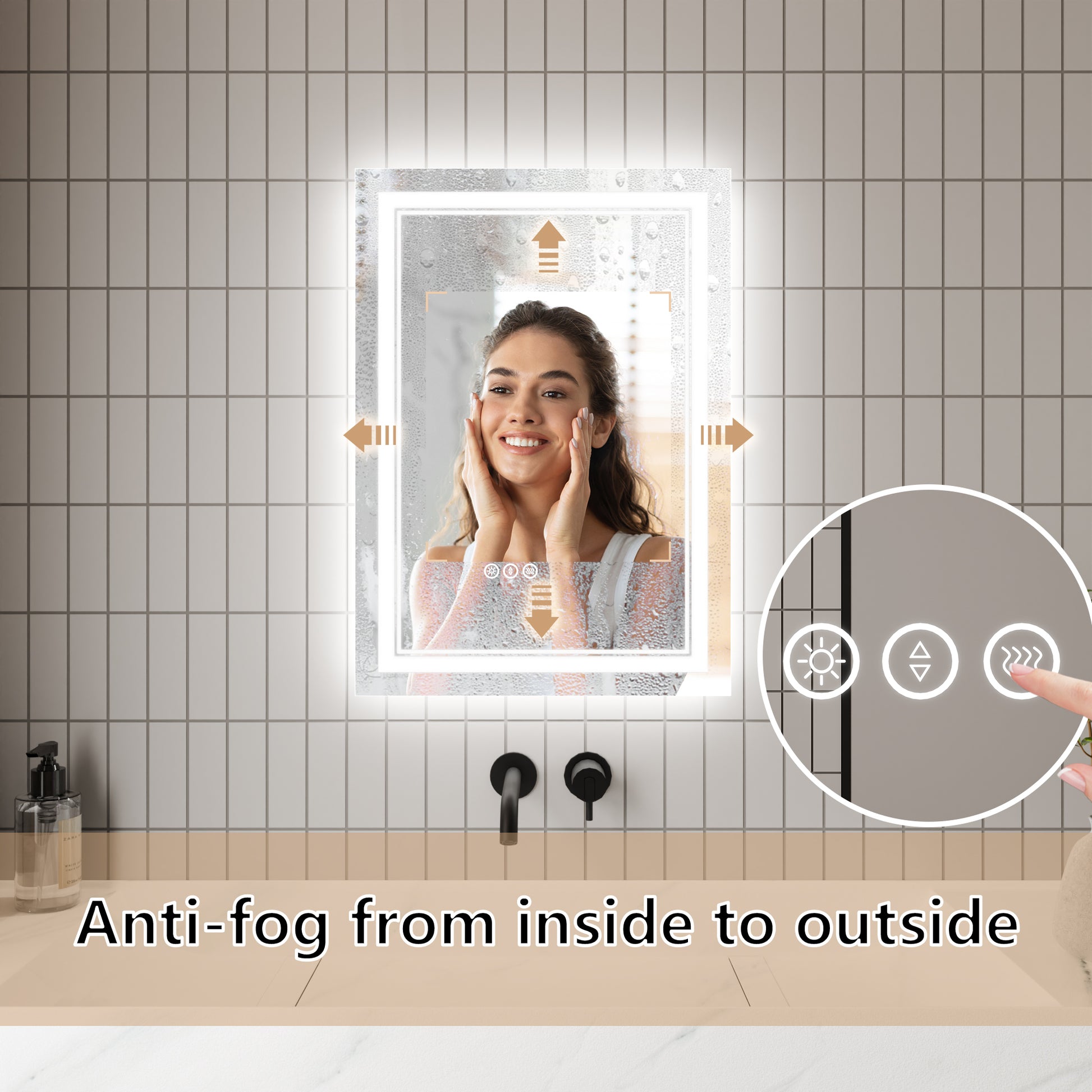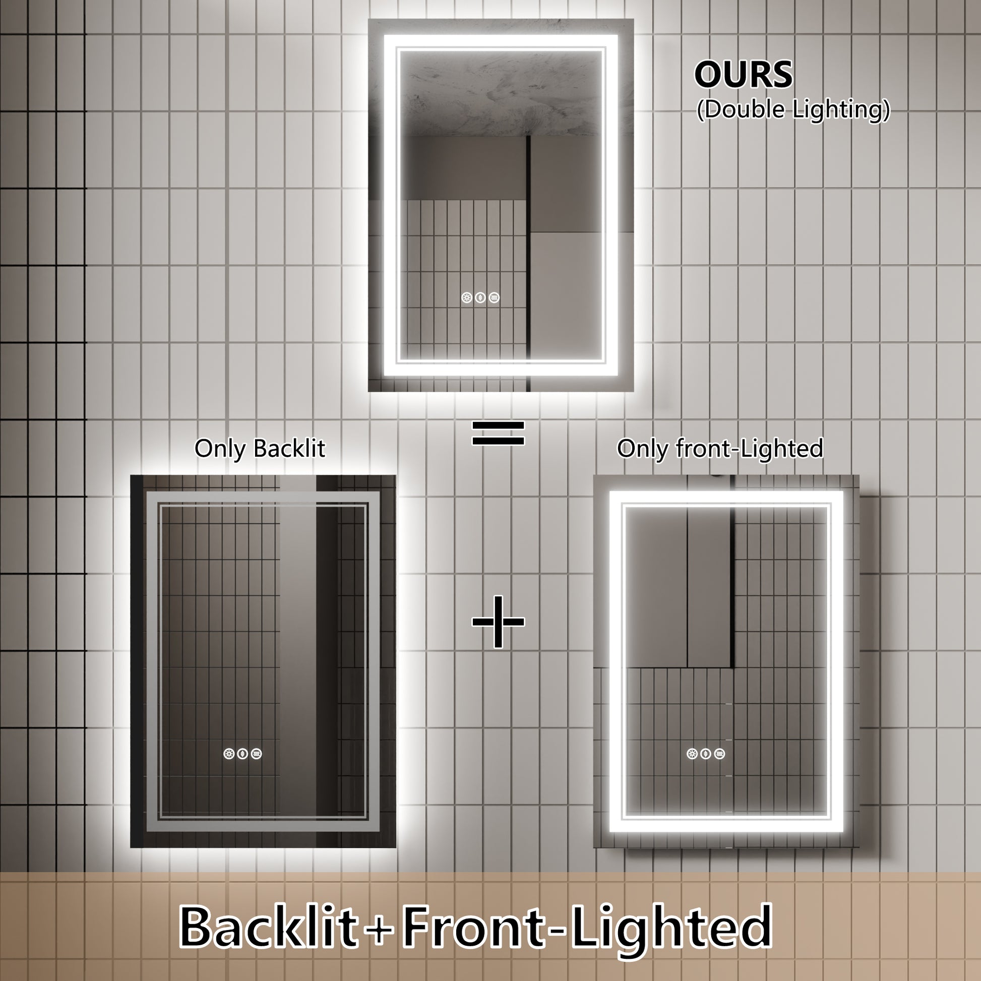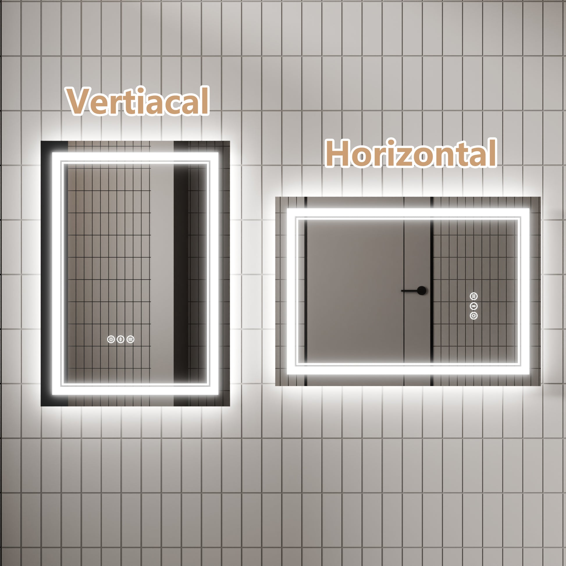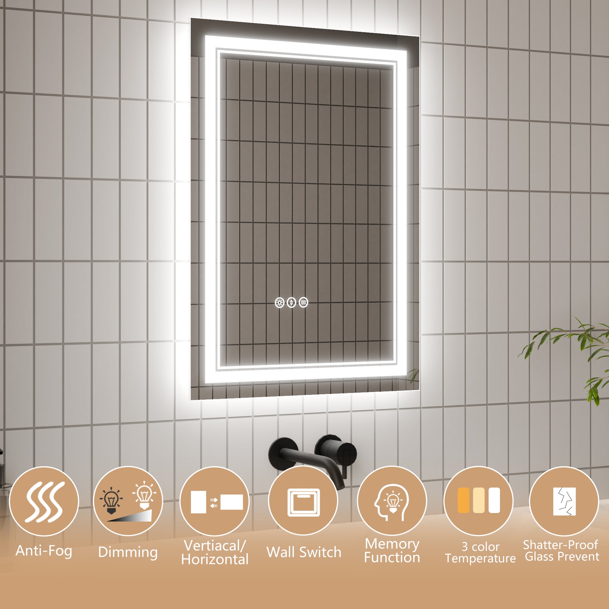 Led Bathroom Mirror, 20X28 Inch Bathroom Vanity Mirrors With Lights, Mirrors For Wall With Smart Touch Button, Anti Fog, Memory Function, Stepless Dimmable Makeup Mirror Horizontal Vertical White Aluminum