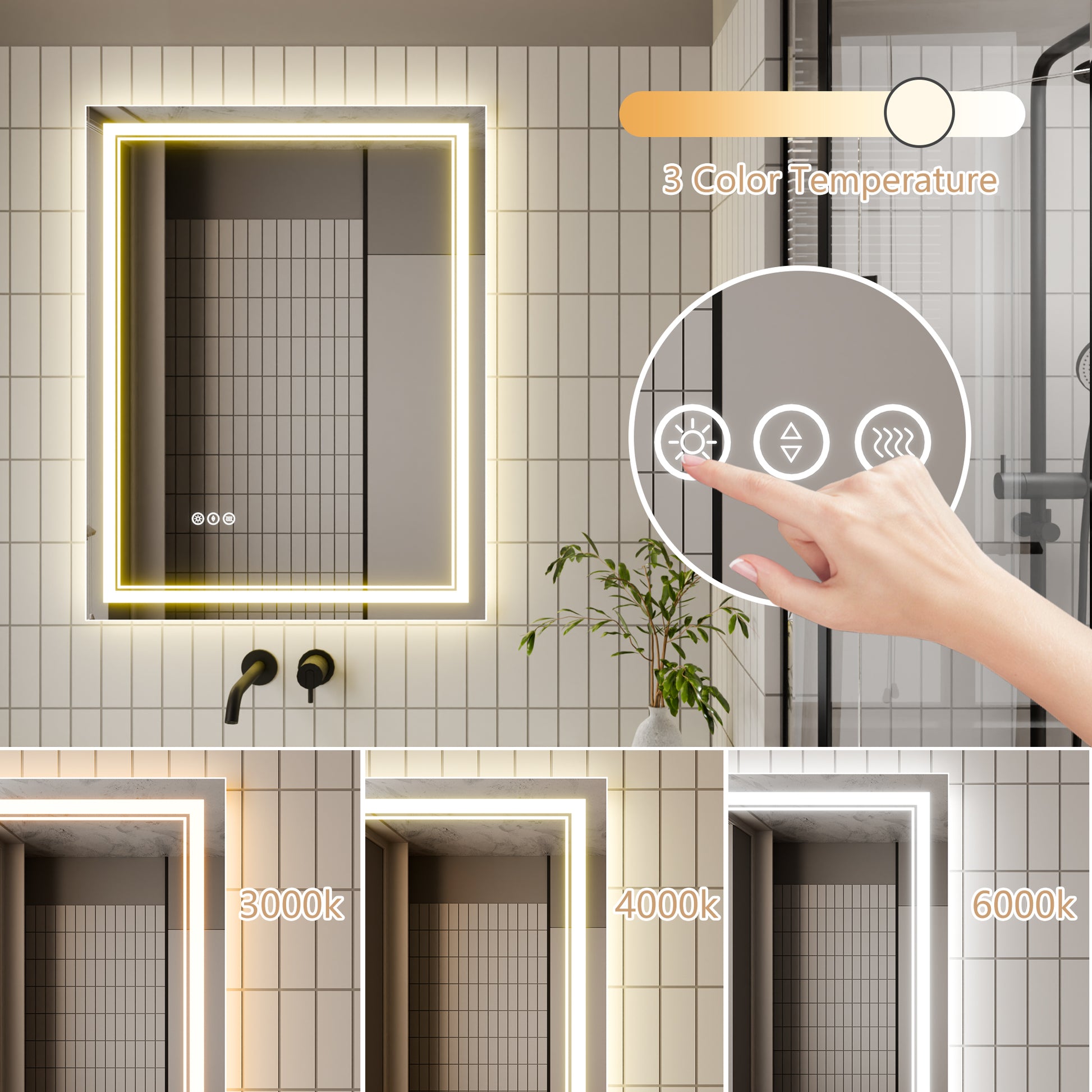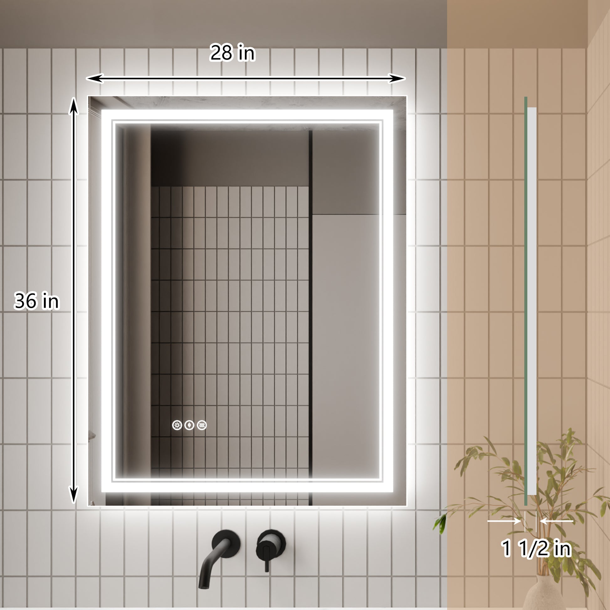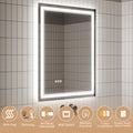 Led Bathroom Mirror, 28X36 Inch Bathroom Vanity Mirrors With Lights, Mirrors For Wall With Smart Touch Button, Anti Fog, Memory Function, Stepless Dimmable Makeup Mirror Horizontal Vertical White Aluminium