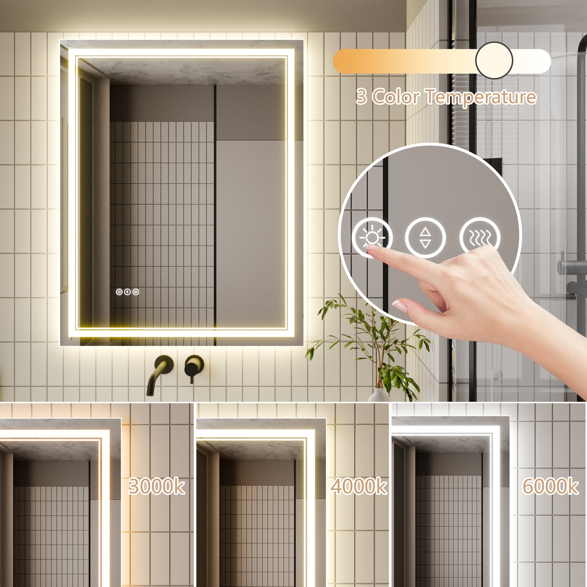 Led Bathroom Mirror, 32X40 Inch Bathroom Vanity Mirrors With Lights, Mirrors For Wall With Smart Touch Button, Anti Fog, Memory Function, Stepless Dimmable Makeup Mirror Horizontal Vertical White Aluminium