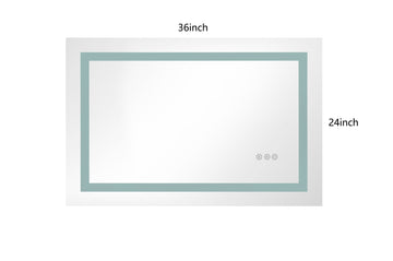Led Bathroom Mirror 36 "X 24 " With Front And Backlight, Large Dimmable Wall Mirrors With Anti Fog, Memory, 3Colors, Led Vanity Mirror White Aluminium
