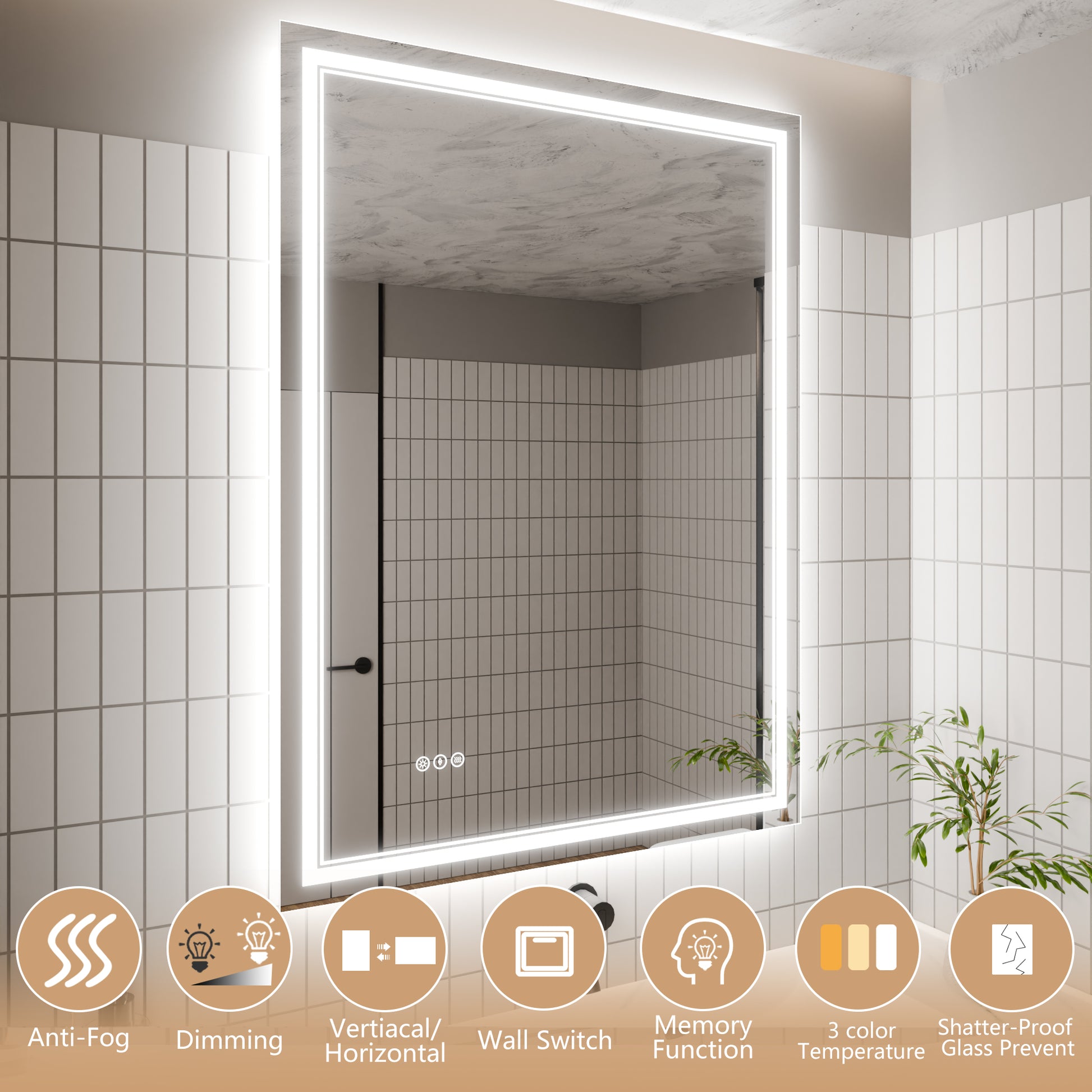 Led Bathroom Mirror, 36X48 Inch Bathroom Vanity Mirrors With Lights, Mirrors For Wall With Smart Touch Button, Anti Fog, Memory Function, Stepless Dimmable Makeup Mirror Horizontal Vertical White Aluminium