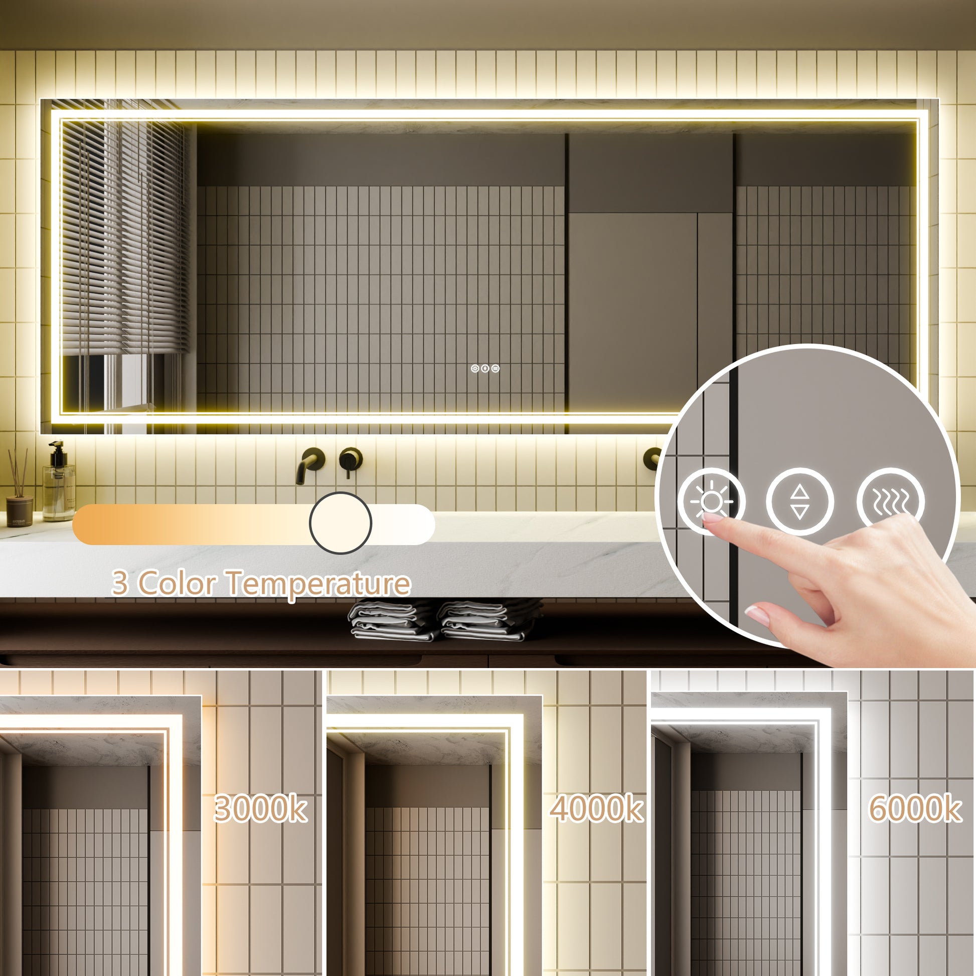 Led Bathroom Mirror, 36X96 Inch Bathroom Vanity Mirrors With Lights, Mirrors For Wall With Smart Touch Button, Anti Fog, Memory Function, Stepless Dimmable Makeup Mirror Horizontal Vertical White Aluminium