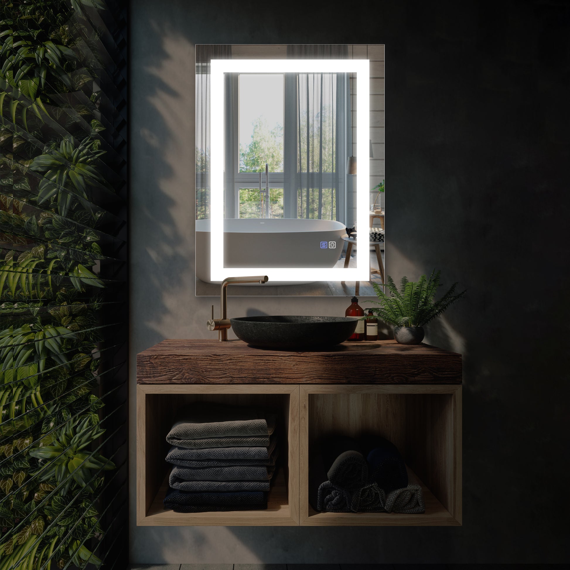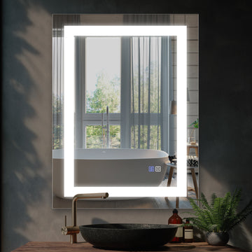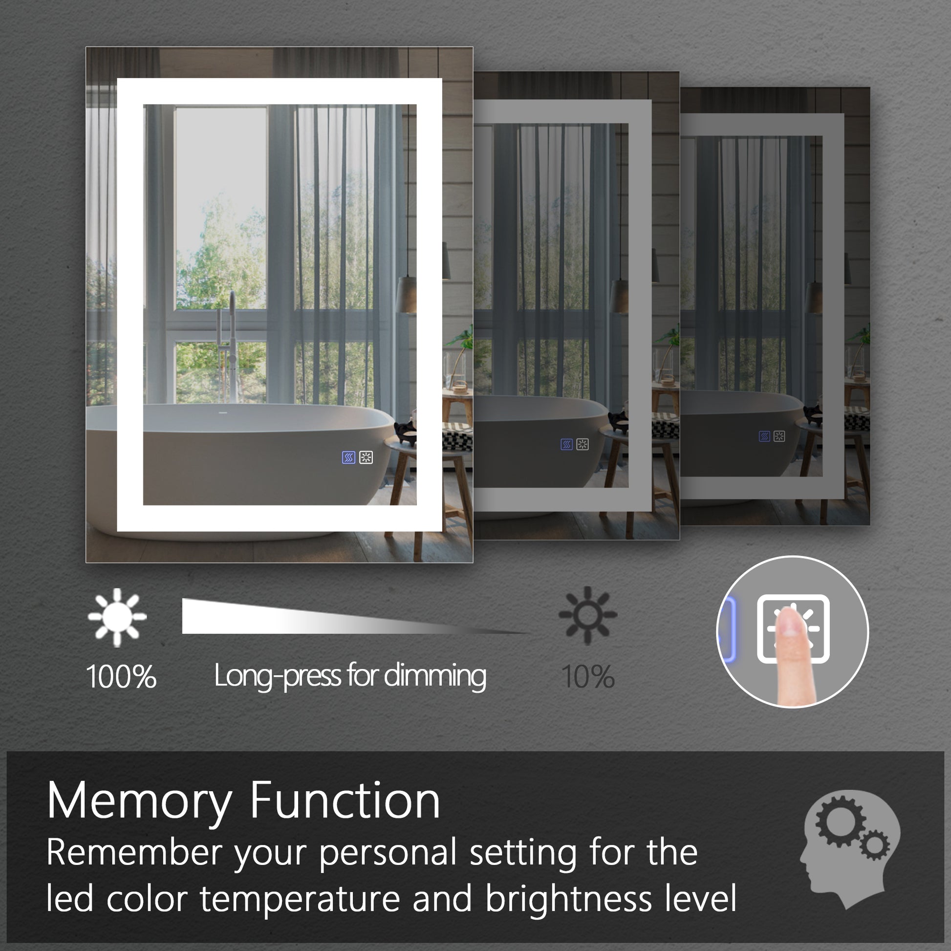 Led Bathroom Vanity Mirror With Light,28*36 Inch, Anti Fog, Dimmable,Color Temper 5000K,Backlit Front Lit,Both Vertical And Horizontal Wall Mounted Vanity Mirror 28X36 White Iron