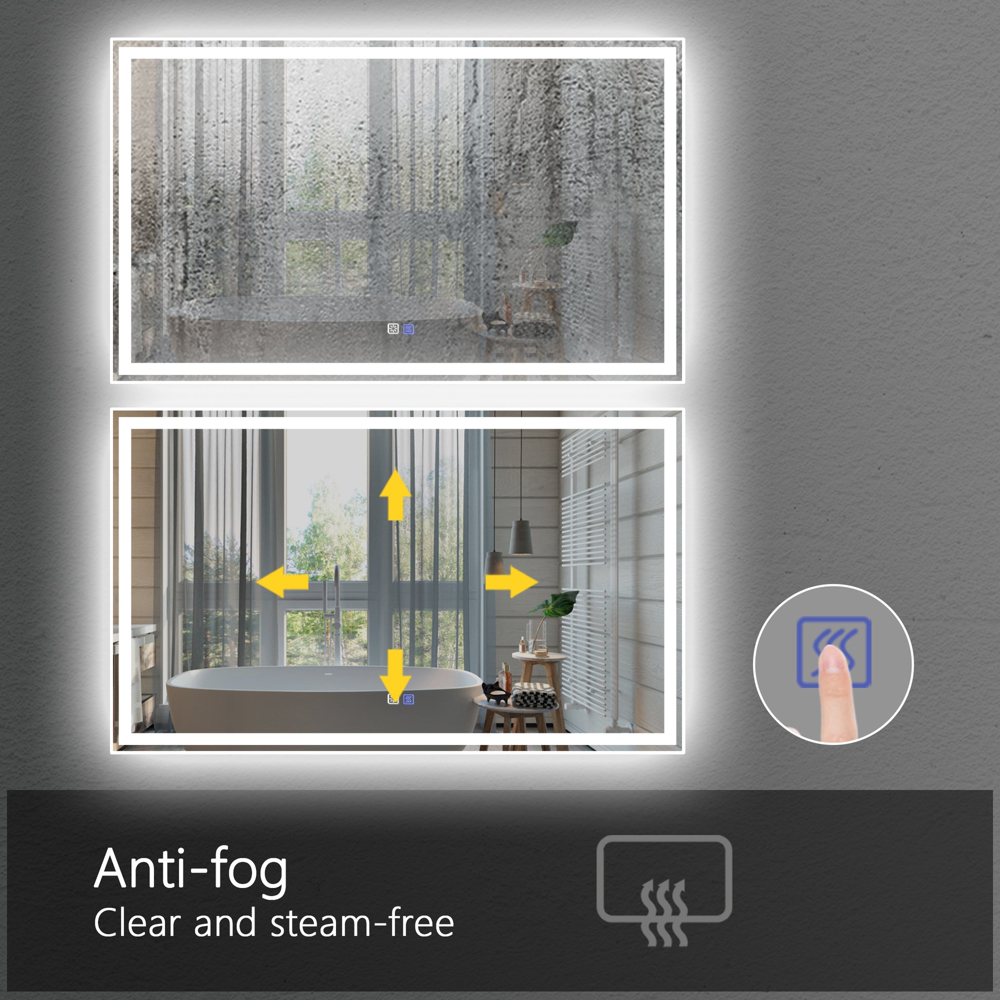 Led Bathroom Vanity Mirror With Light,60*36 Inch, Anti Fog, Dimmable,Color Temper 5000K,Backlit Front Lit,Both Vertical And Horizontal Wall Mounted Vanity Mirror 60X36 White Aluminium