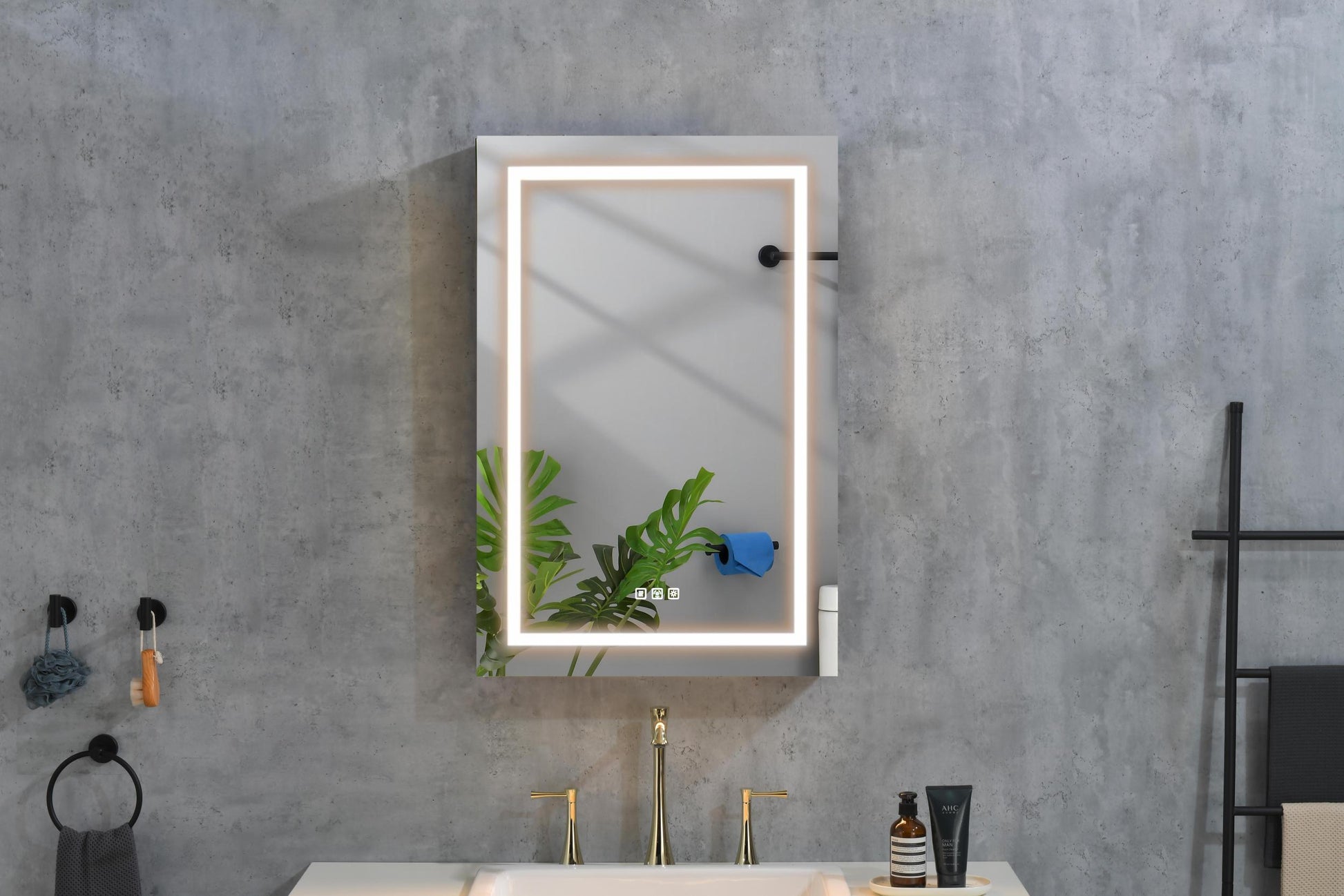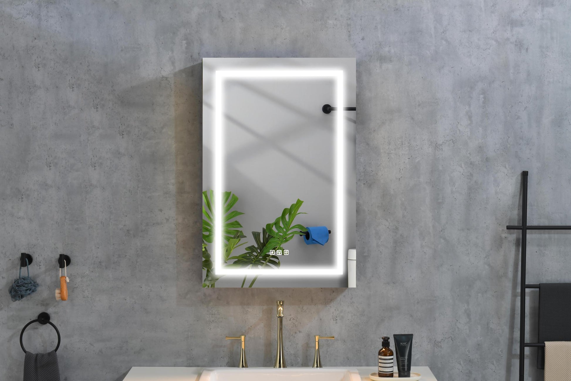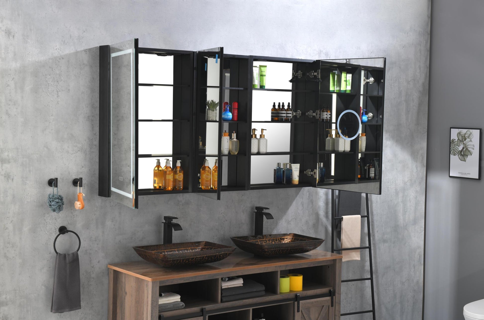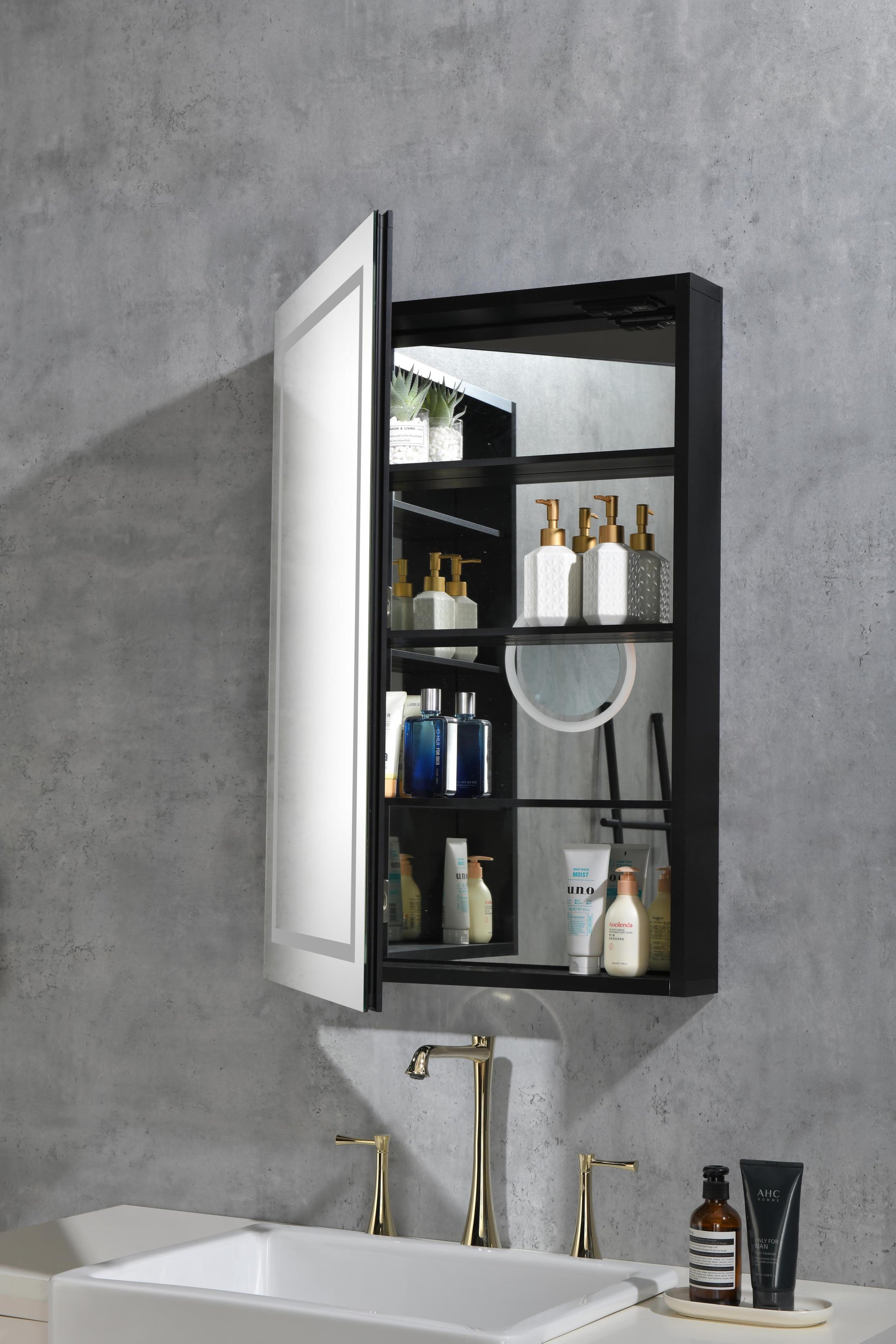 Led Lighted Bathroom Medicine Cabinet With Mirror, Surface Lighted Medicine Cabinet,Dimmable,Shelves,Intelligent Switch Medicine Cabinet, Aluminum Frame,Left Opening Door Matte Black Aluminium