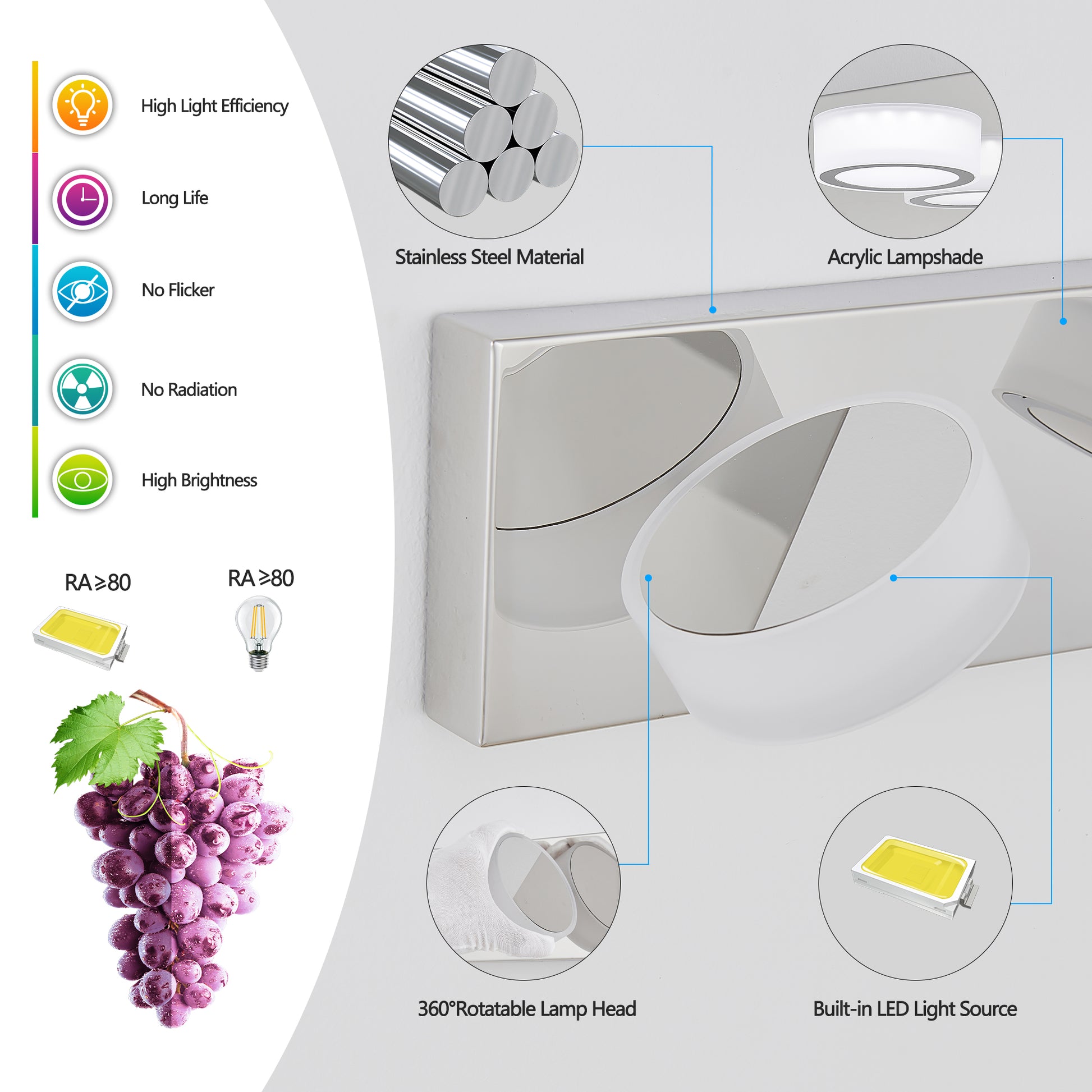 Led Modern Chrome 4 Light Vanity Lights Fixtures Over Mirror Bath Wall Lighting Chrome Acrylic,Stainless Steel