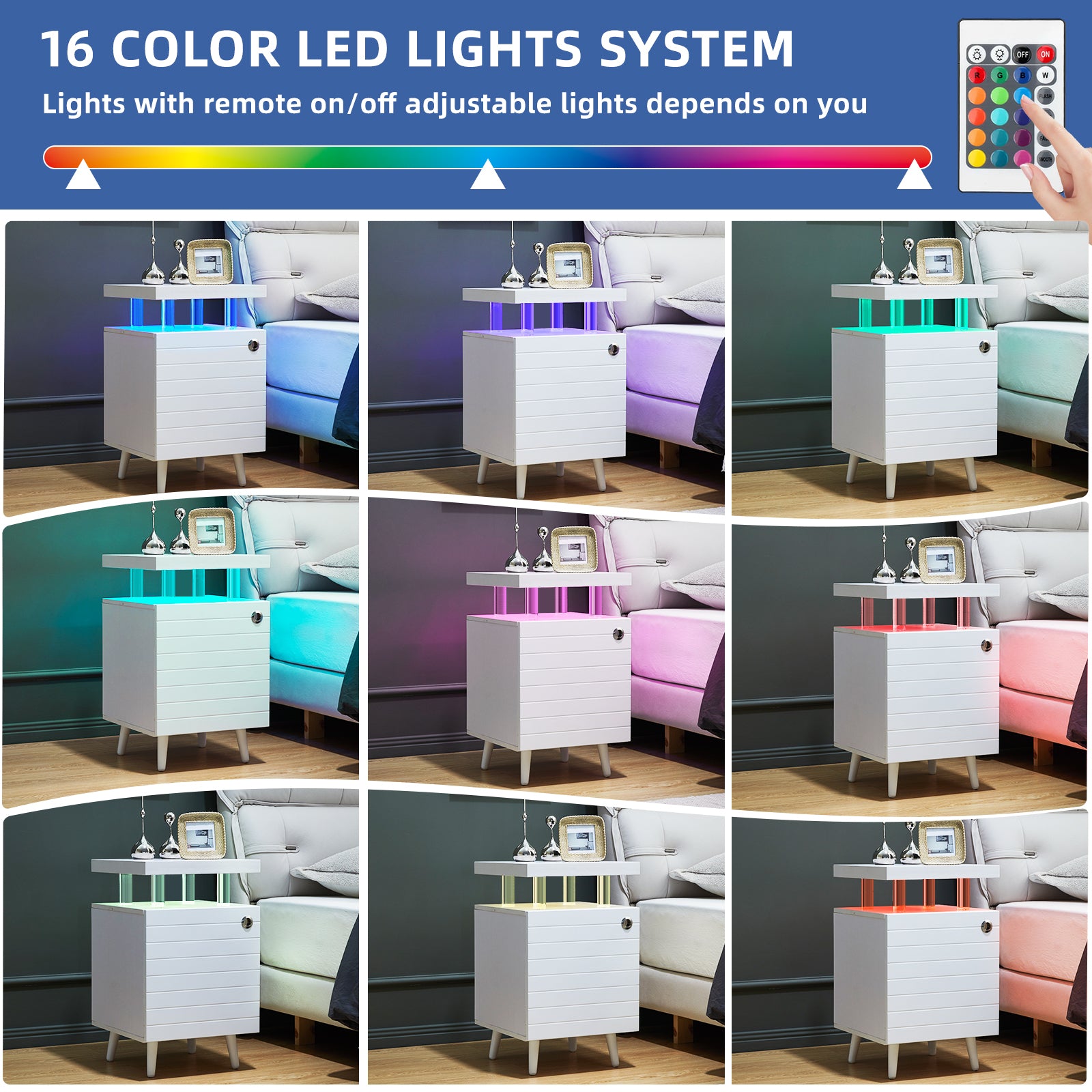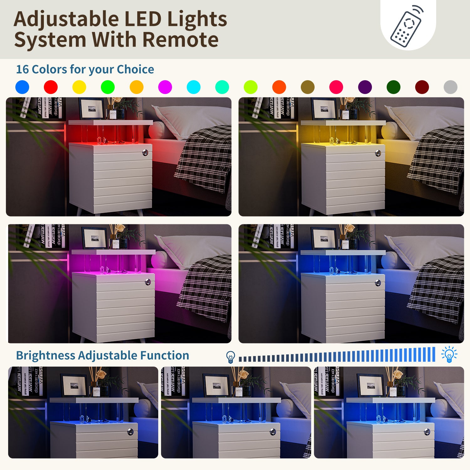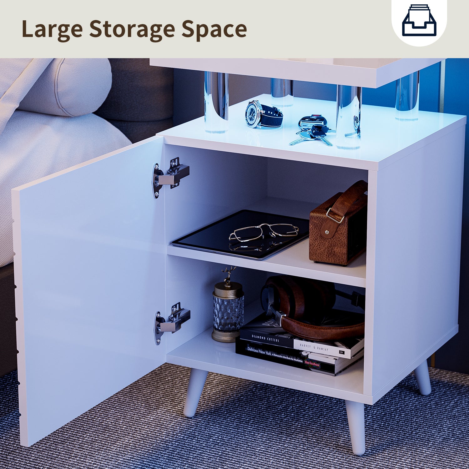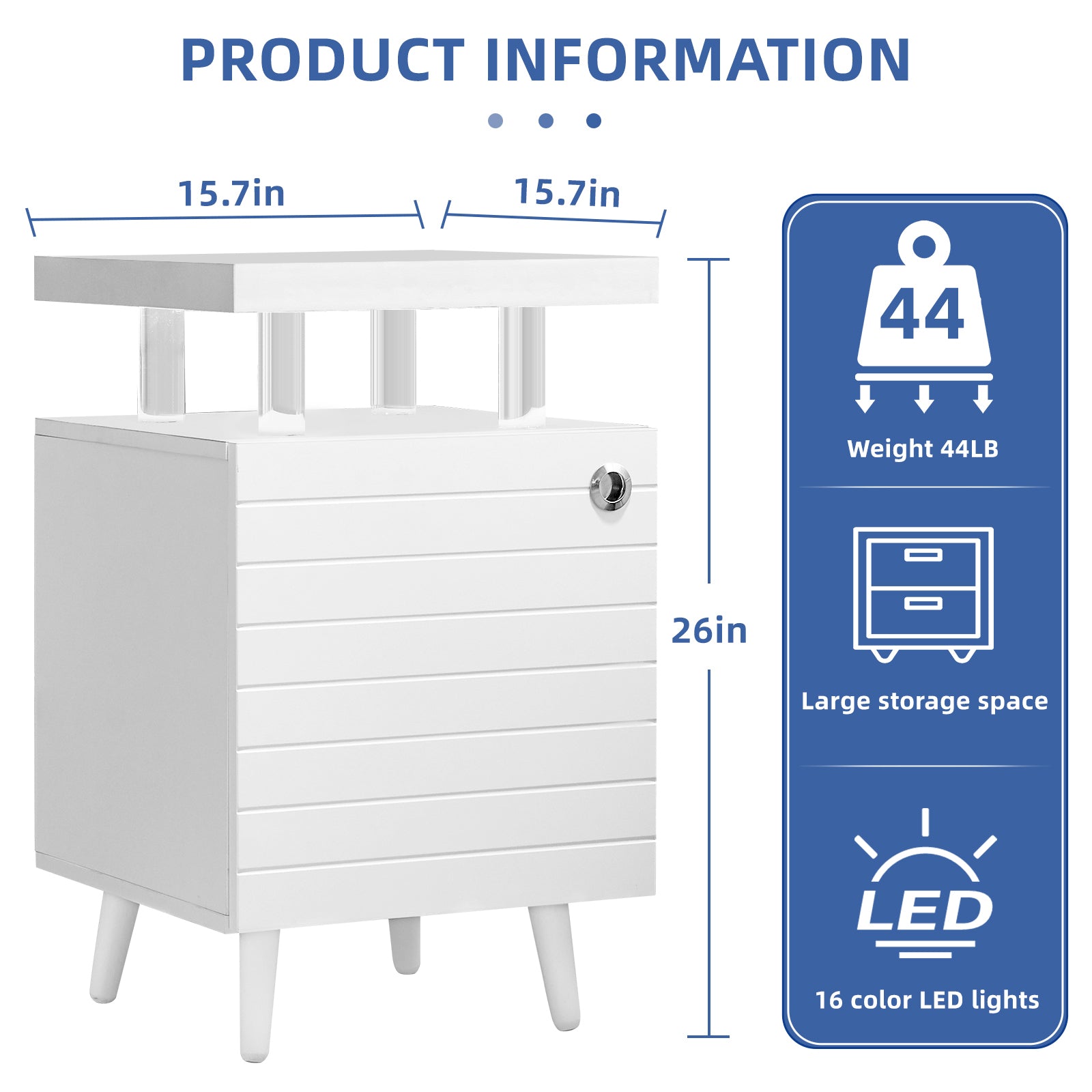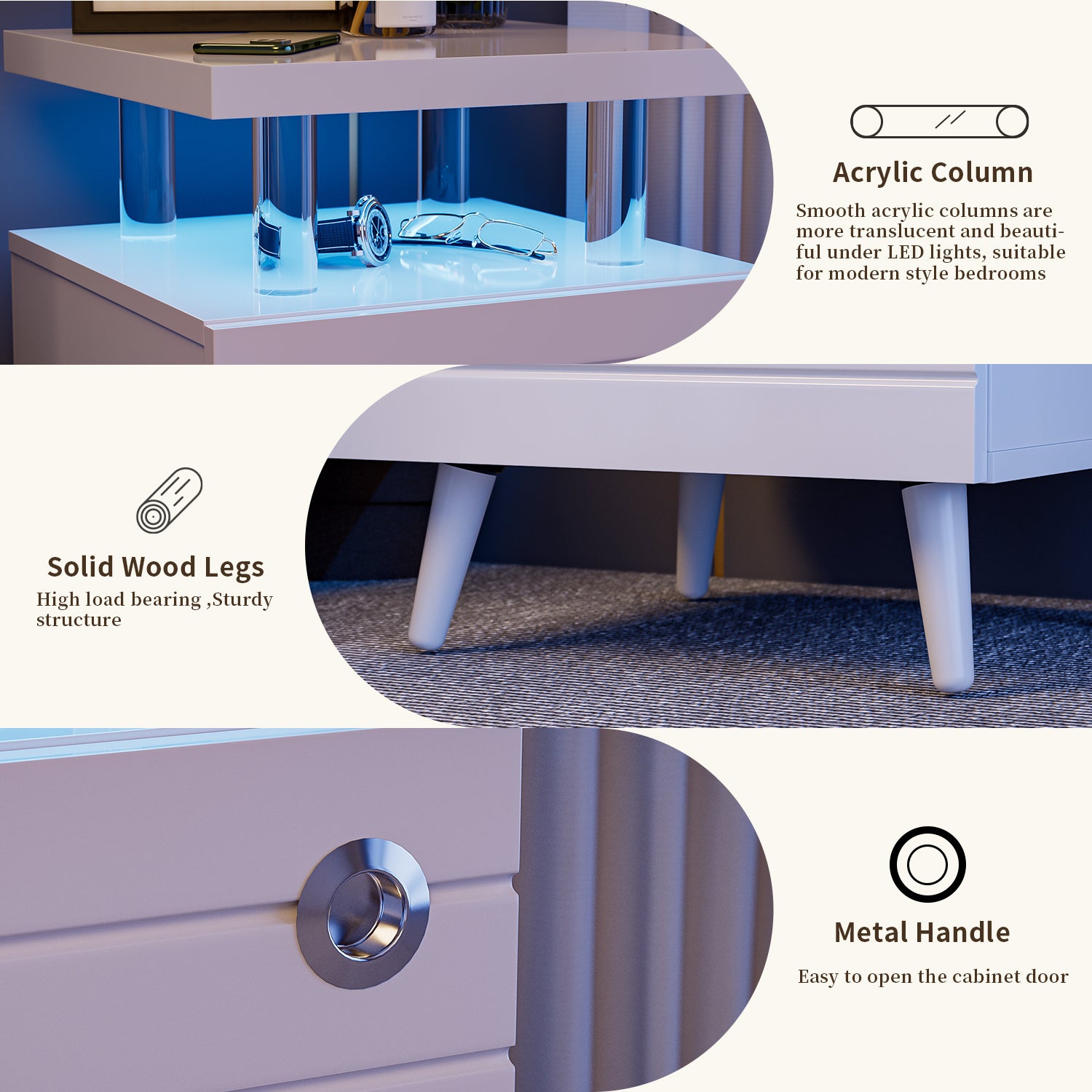 Led Nightstand Led Bedside Table End Tables Living Room With 4 Acrylic Columns, Bedside Table With Drawers For Bedroom White White White 2 Drawers Bedroom With Legs American Design,American Traditional,Casual,Classic,Modern Oak Storage Walnut Acrylic