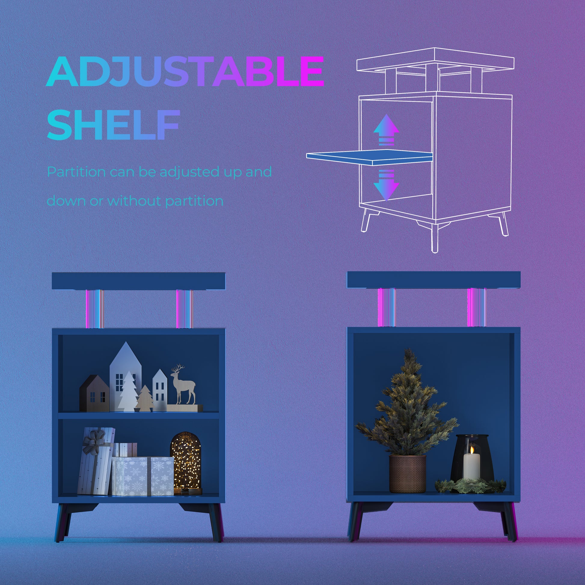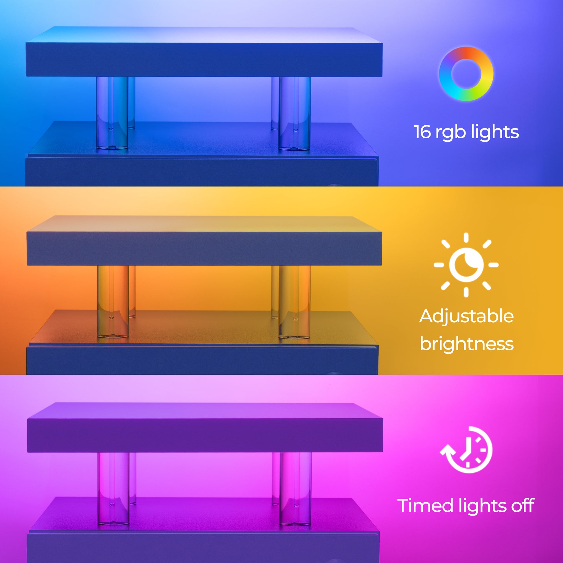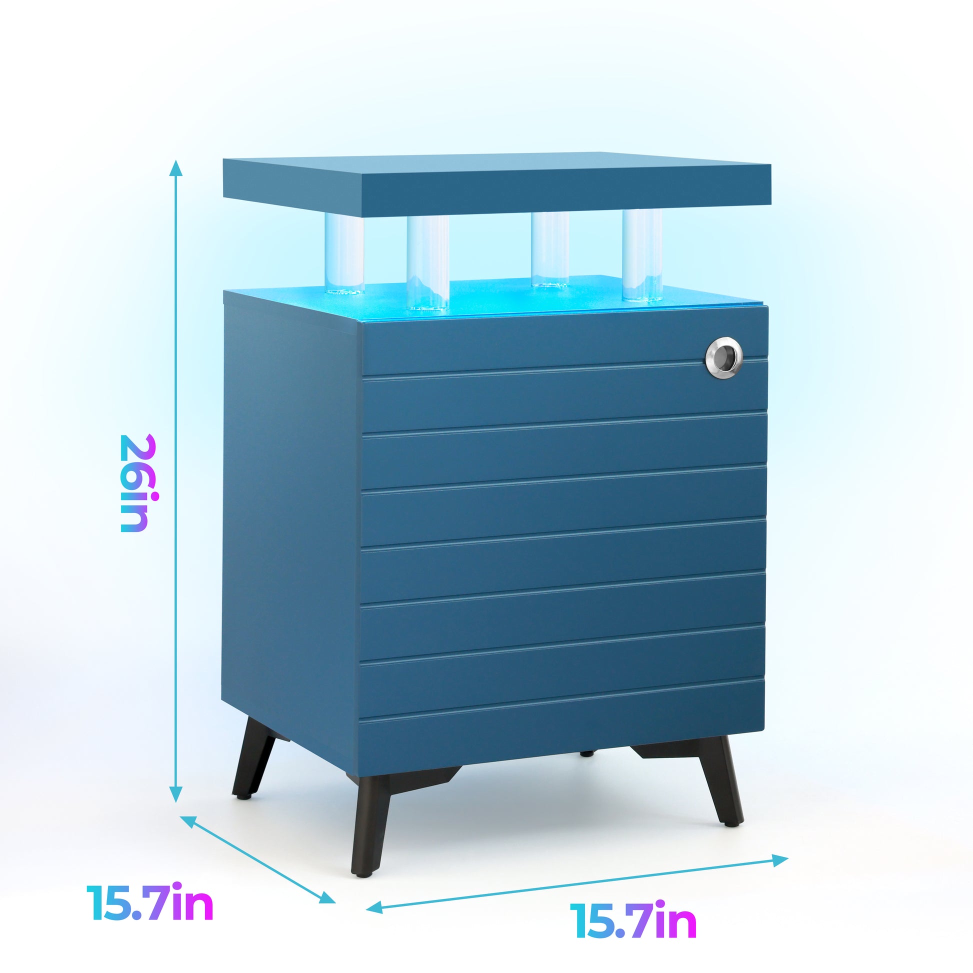 Led Nightstand Led Bedside Table End Tables Living Room With 4 Acrylic Columns, Bedside Table With Drawers For Bedroom Blue Blue Bedroom With Legs American Design,American Traditional,Casual,Classic,Modern Oak Storage Natural Acrylic Engineered Wood