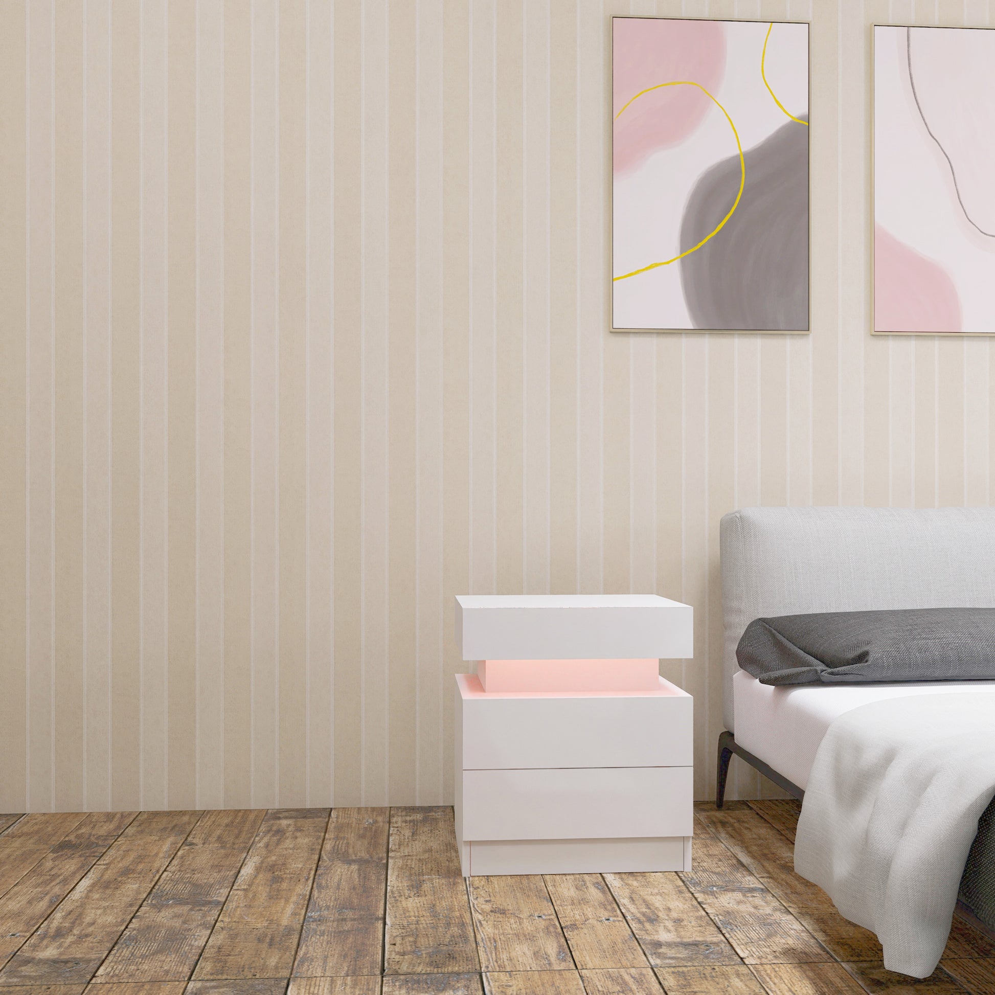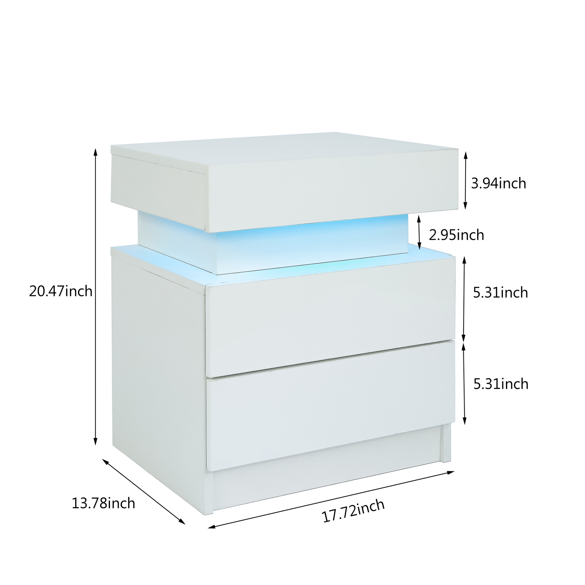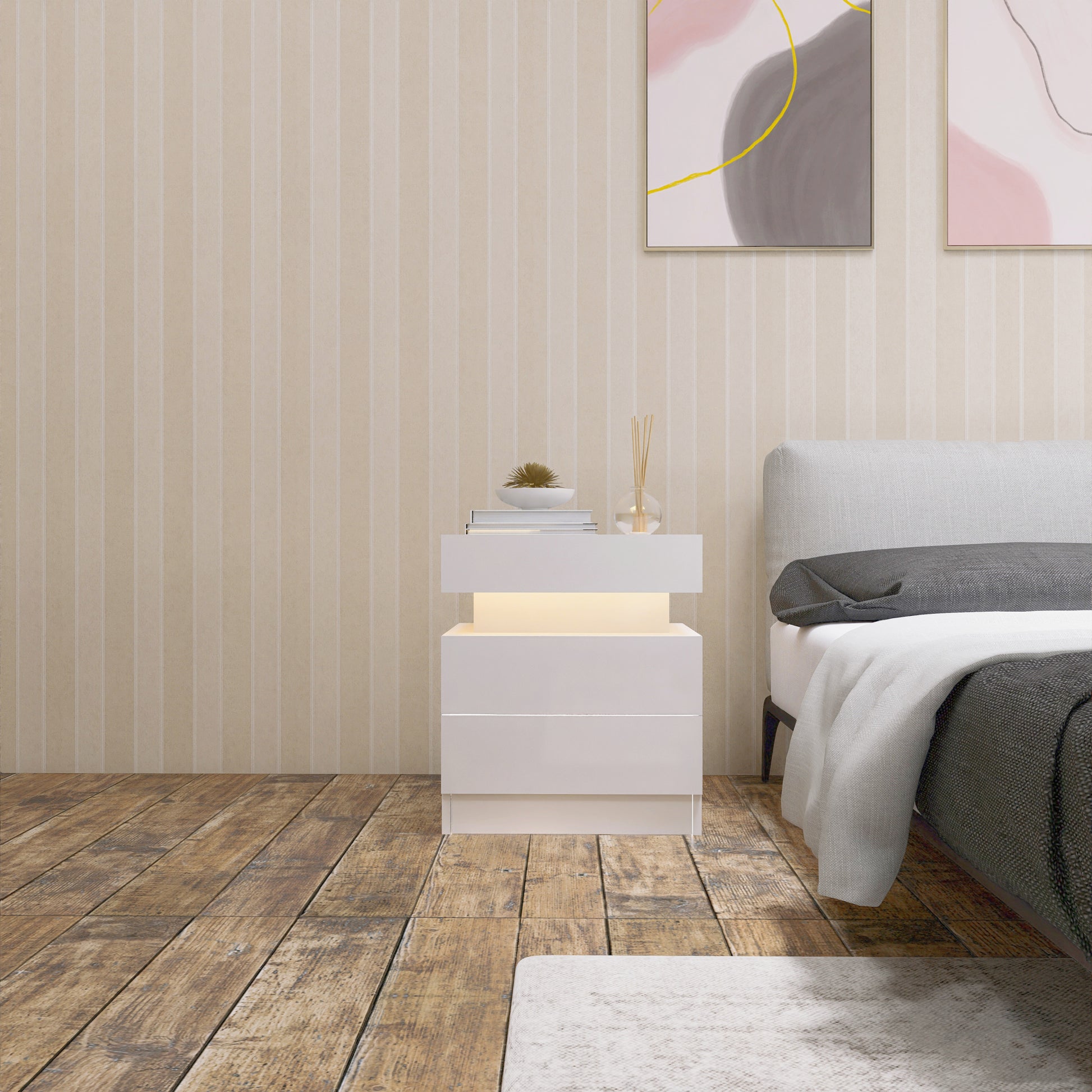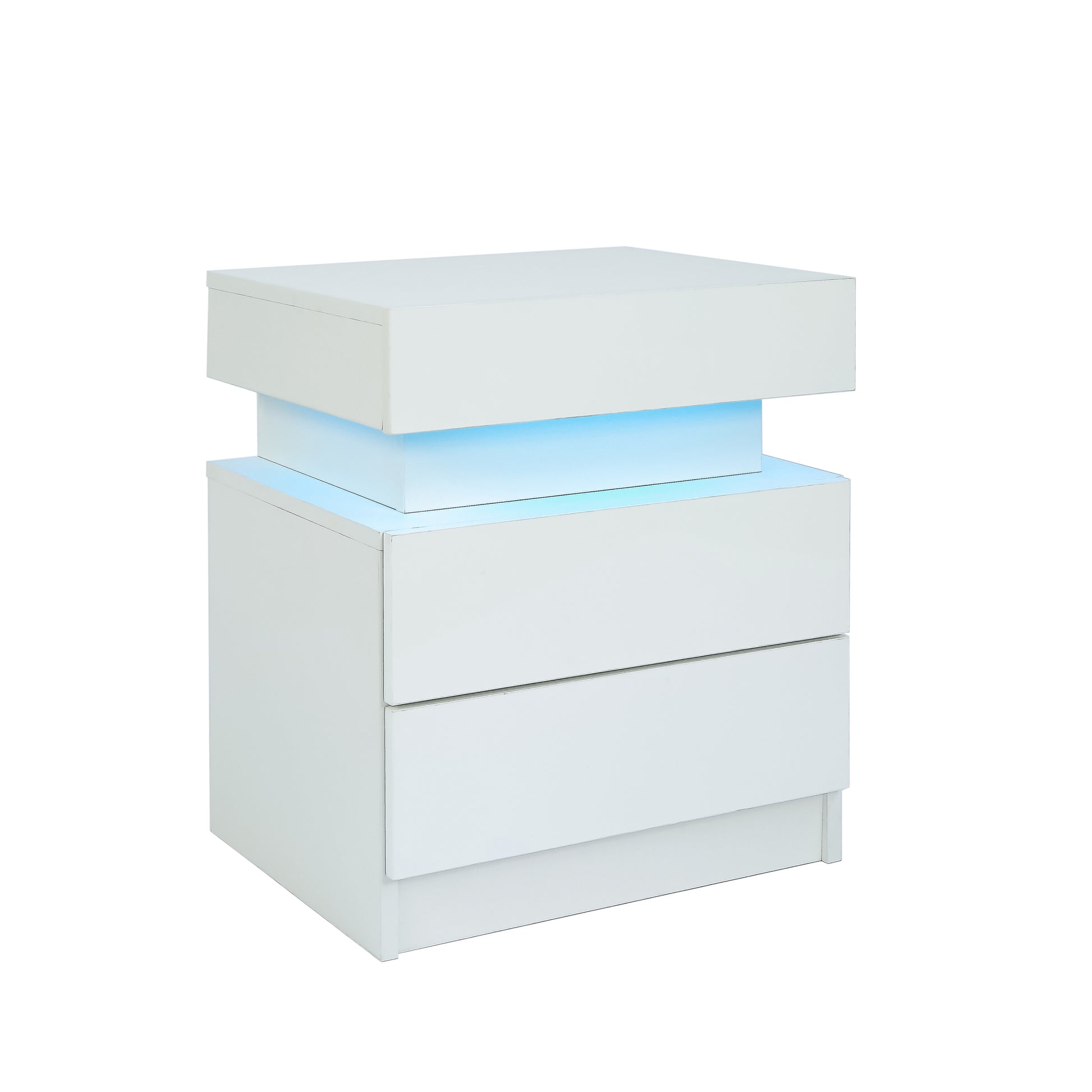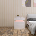 Led Nightstand Modern White Nightstand With Led Lights Wood Led Bedside Table Nightstand With 2 High Gloss Drawers For Bedroom White Abs Pc Particle Board