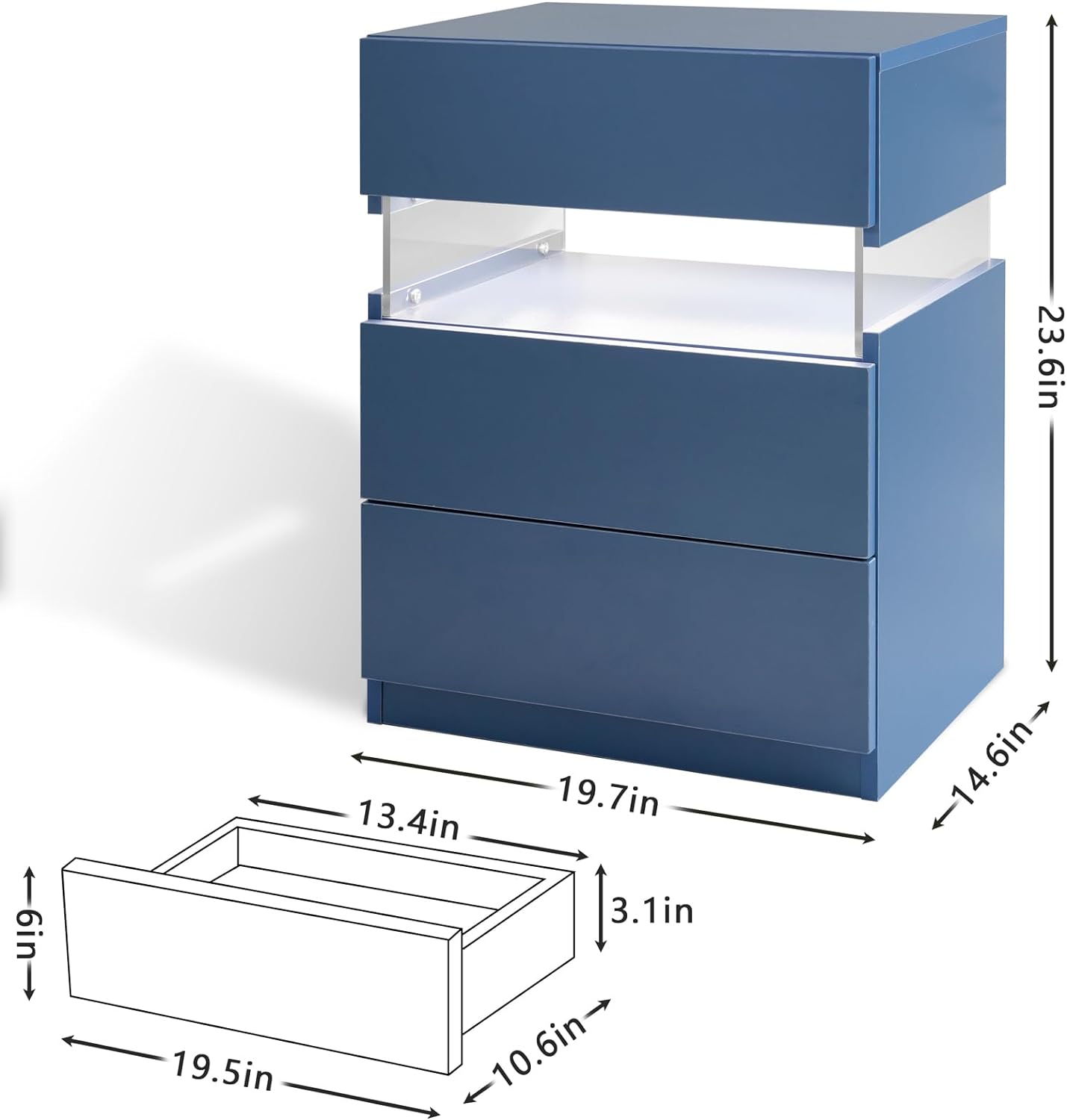 Led Nightstands Acrylic Board Led Bedside Tables For Bedroom End Table With 3 Drawer Dresser For Bedroom Living Room Bedside Furniture Blue Blue 3 Drawers Bedroom Bedside Cabinet American Design,American Traditional,Boho,Casual,Classic Easy Assembly