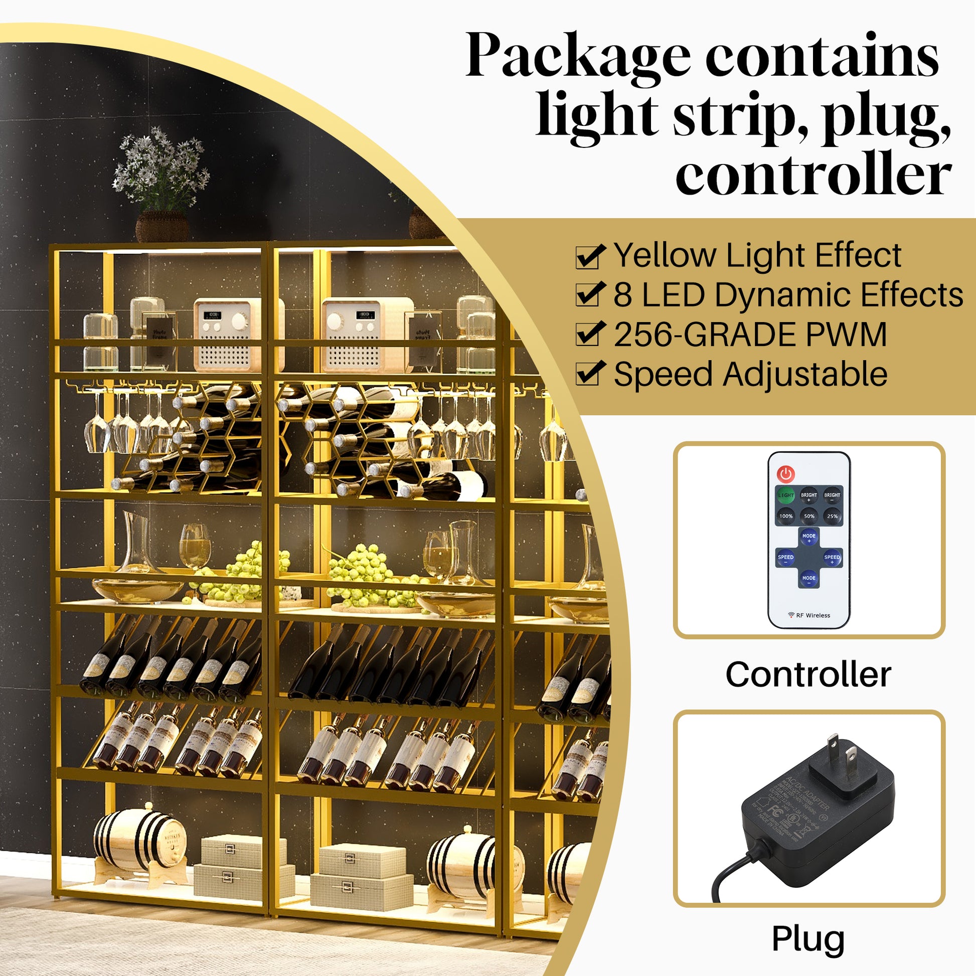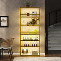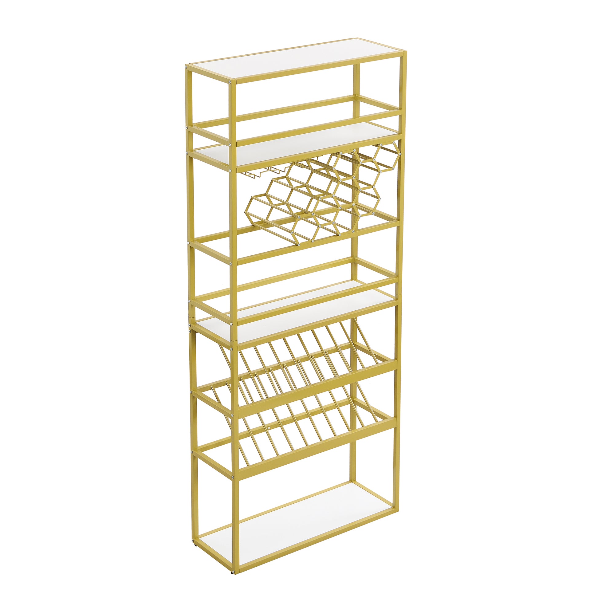 Led Tall Led Tall Wine Rack Freestanding Floor, 7 Tier Wine Baker Rack With Glass Holder & Wine Storage, Industrial Wine Display Shelf Wine Bar Cabinet For Bar, Kitchen, Dining Room White Gold Dining Room Industrial Mdf Metal
