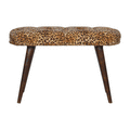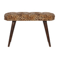 Leopard Print Deep Button Bench Walnut Foam Wood Fabric