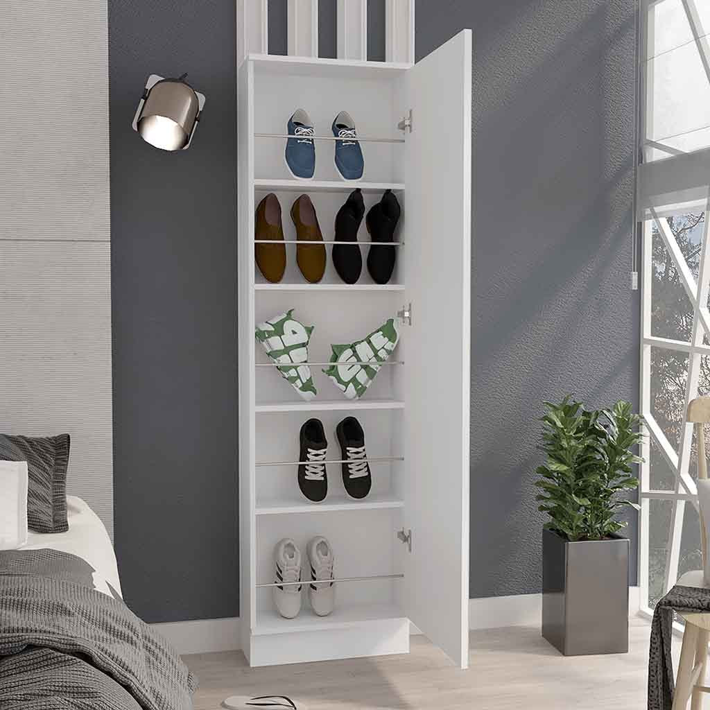 Leto Xl Shoe Rack, Mirror, Five Interior Shelves, Single Door Cabinet White White Primary Living Space Modern Shoe Storage Particle Board Particle Board