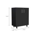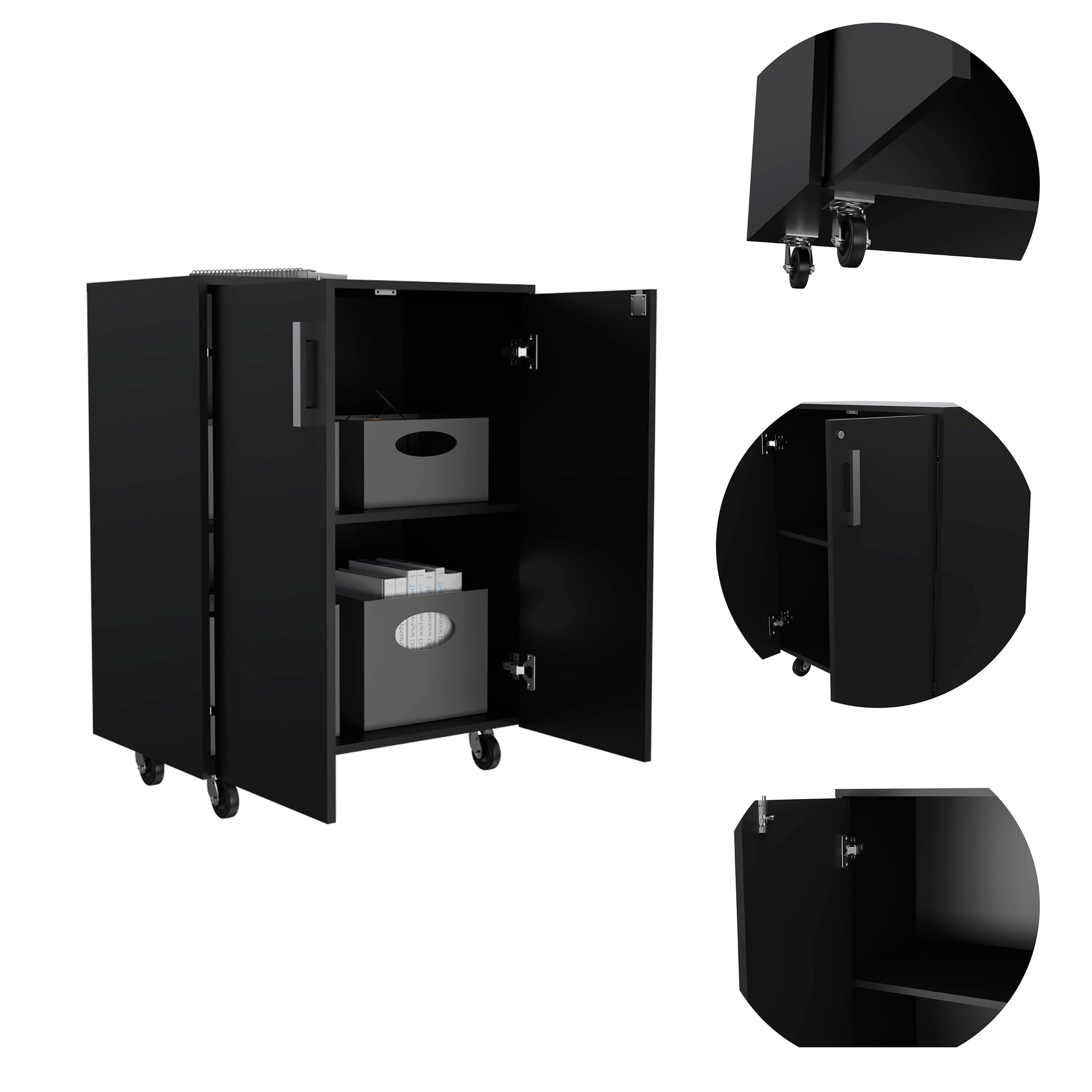 Lewis Storage Cabinet Base, Four Caster, Double Door Cabinet, Two Interior Shelves Black Mdf Engineered Wood
